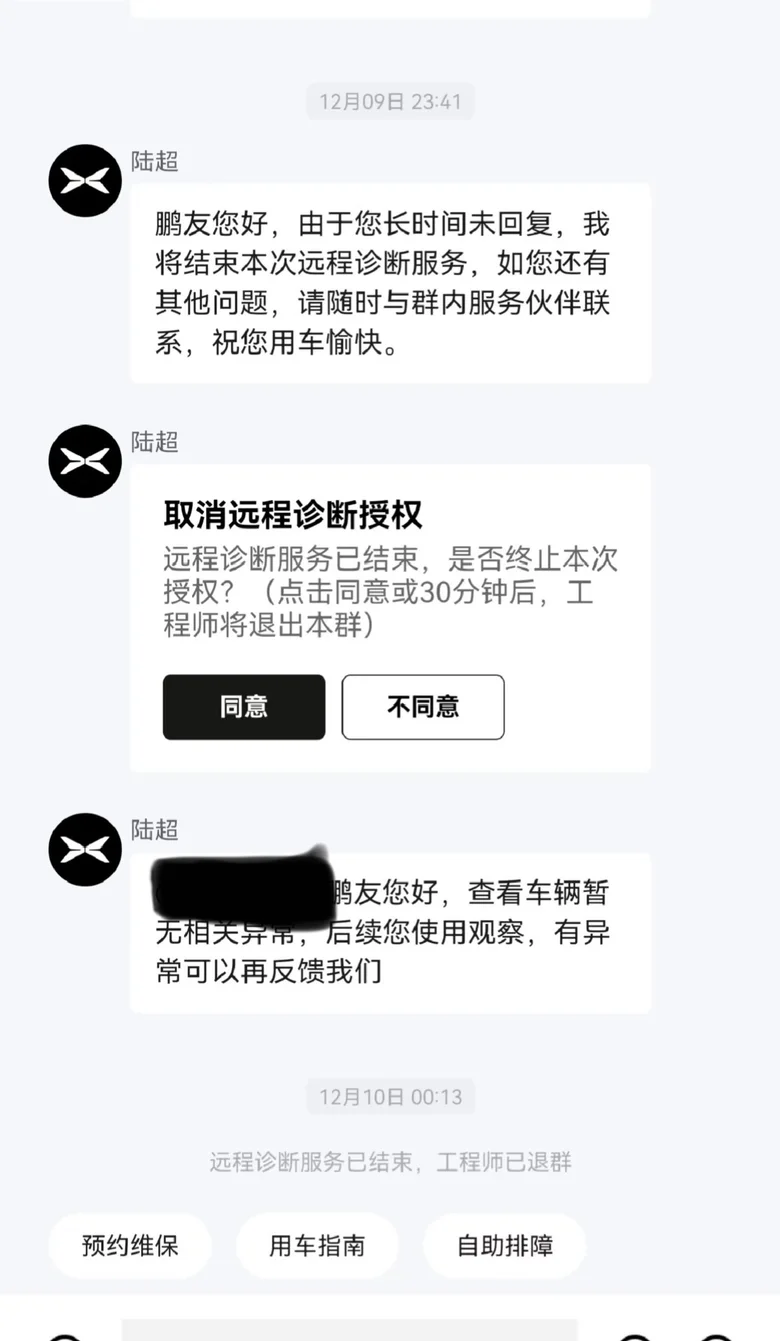小鹏的诊断服务真的是没话说,主打的就是两个字!靠谱!这个月出门,小M03突然不停的出紧急提示音,让刚开车的我手足无措。赶紧联系客服,很快就连接上,还担心会一直排队。就在排队的过程中发现是自己笨操作不当,刚解决就联系上了客服。大赞小鹏!!当时还担心要没车开哈哈