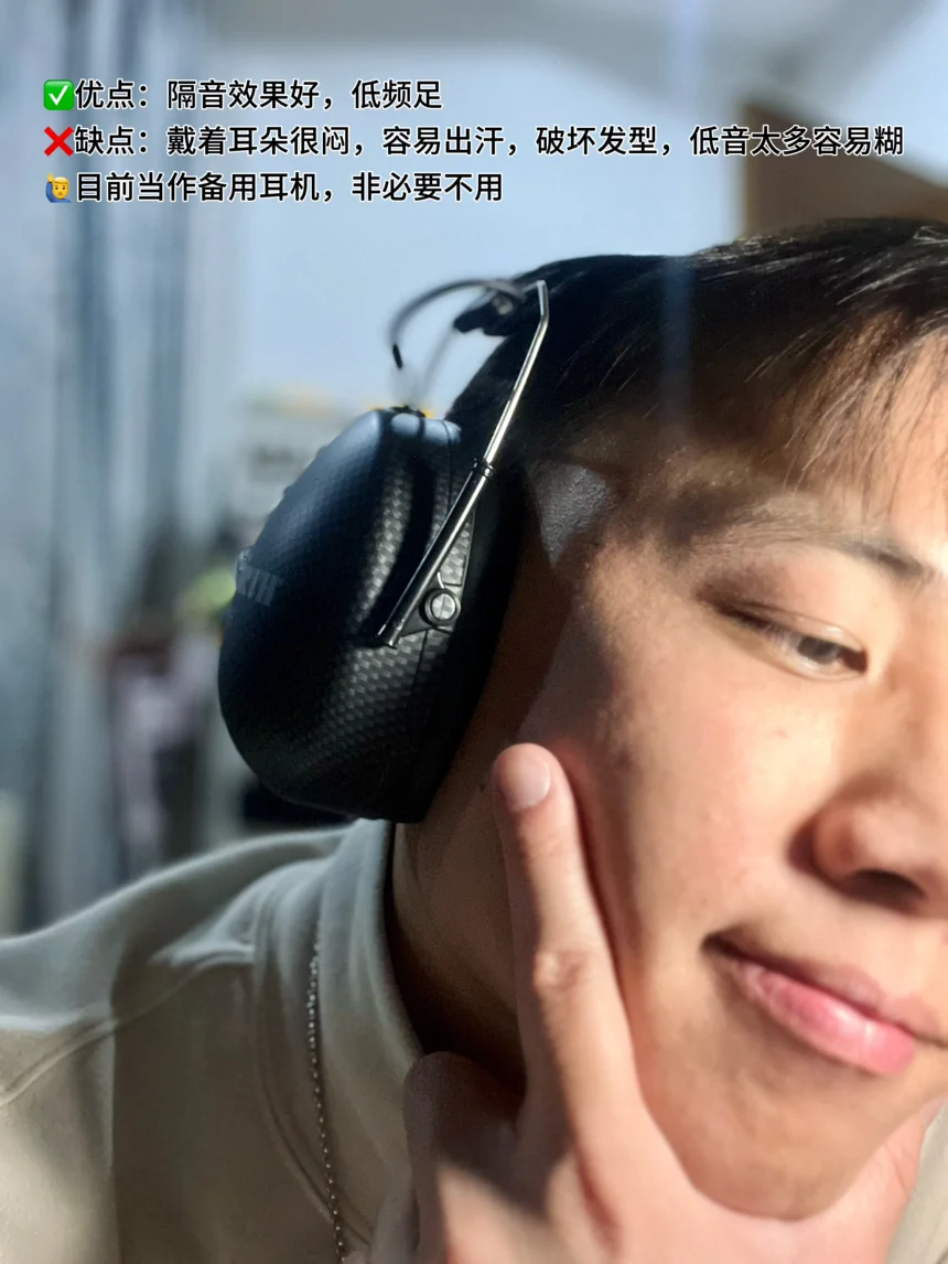❌缺点:戴着耳朵很闷,容易出汗,破坏发型,低音太多容易糊