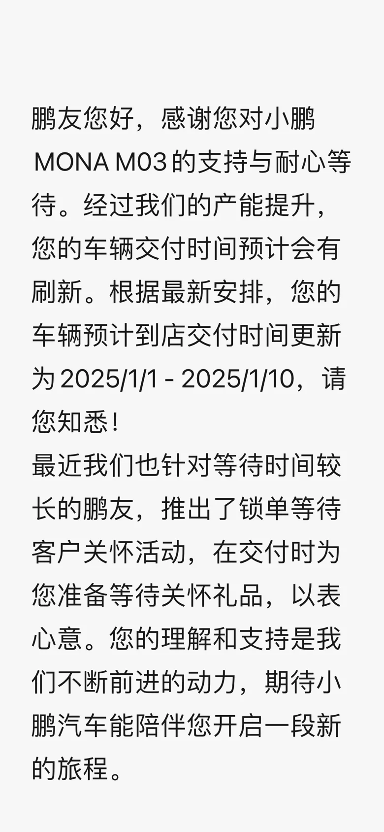 期间也收到延期通知,那时心情不是特别好,因为按时间来算收不到生日礼物🎁了,小鹏也拿出了诚意,延迟交付积分。给小鹏点赞👍