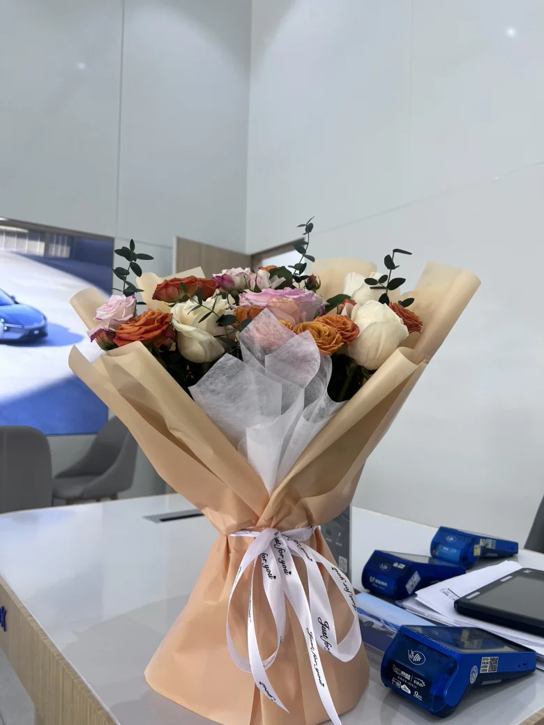 感谢我的销售小哥哥准备的花束和礼物🎁九阳空气炸锅,一直想要的,😂想不到生日当天愿望实现了