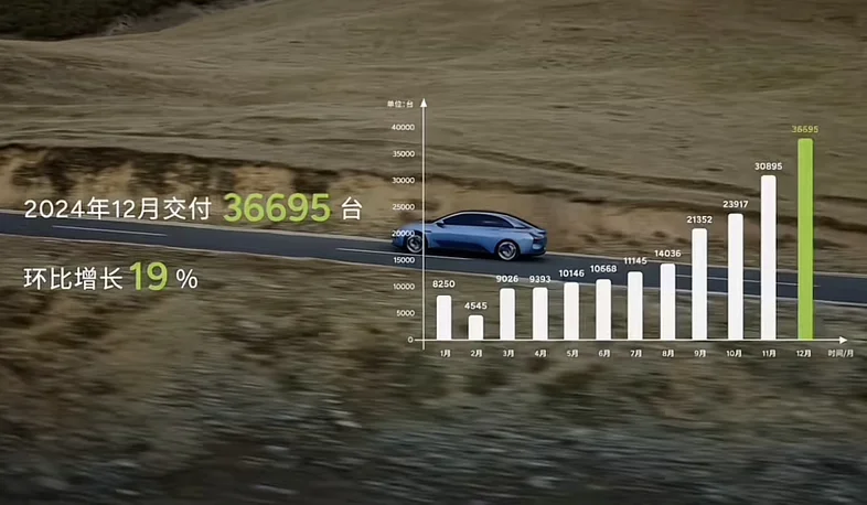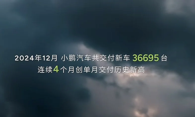 小鹏汽车,连续4个月创新高,2024年12月交付36695台,展望新的一年2025年,小鹏将再创辉煌