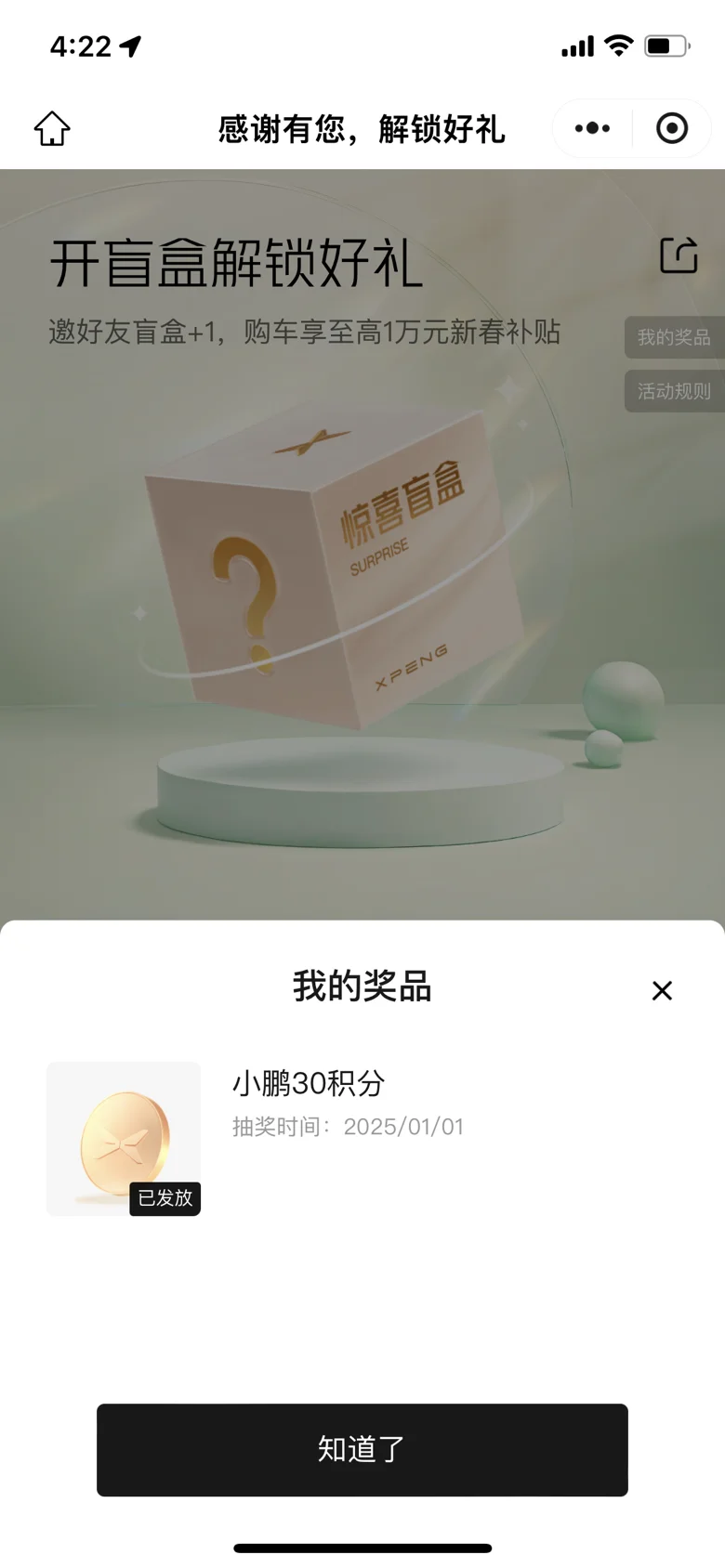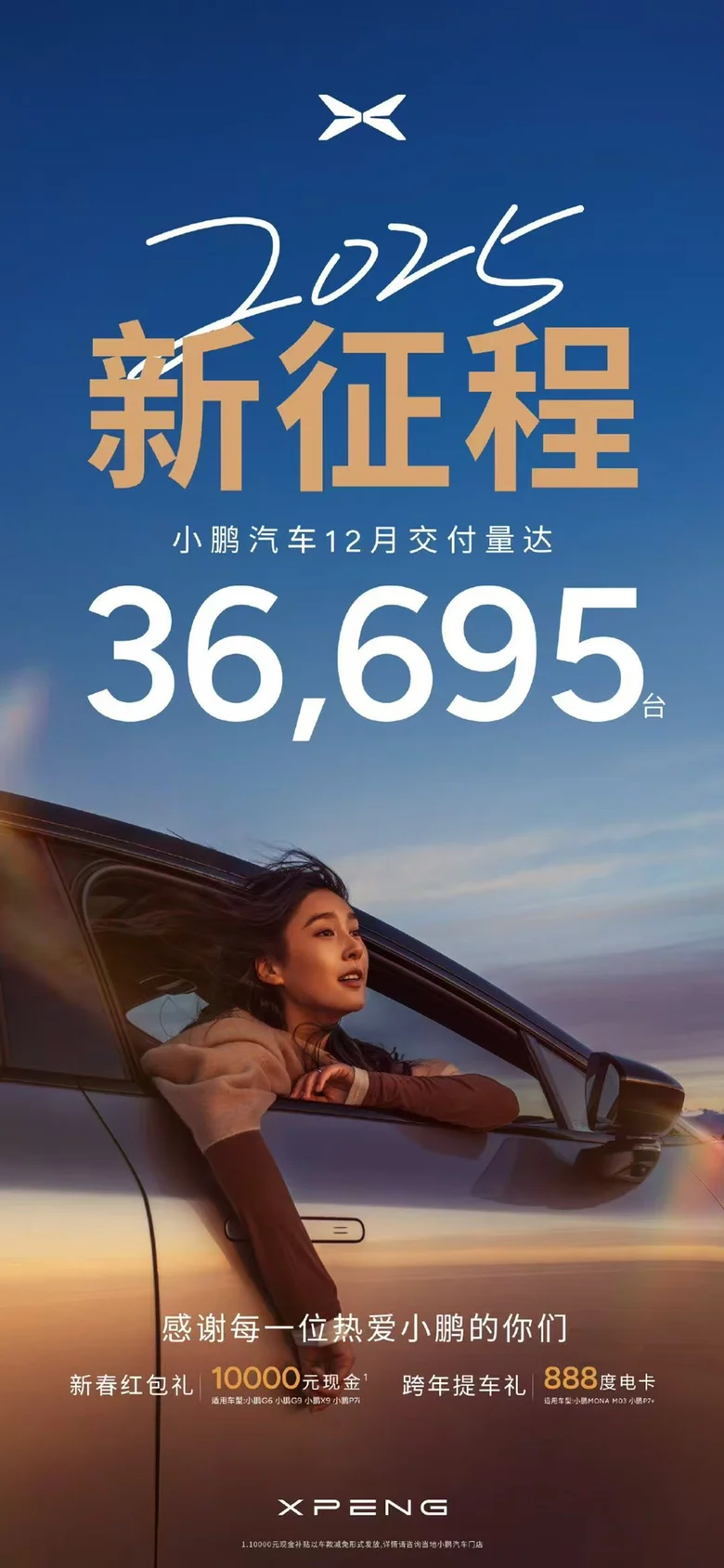 小鹏汽车2024年12月共交付新车36,695台,同比增长82%,环比增长19%,已连续 4个月创单月交付历史新高![鼓掌]普天同庆,抽奖走起,抽奖不停,福利不停😁我也能中奖的,哈哈哈,知足常乐。哈哈#小鹏暖心服务# #小鹏MONA M03#