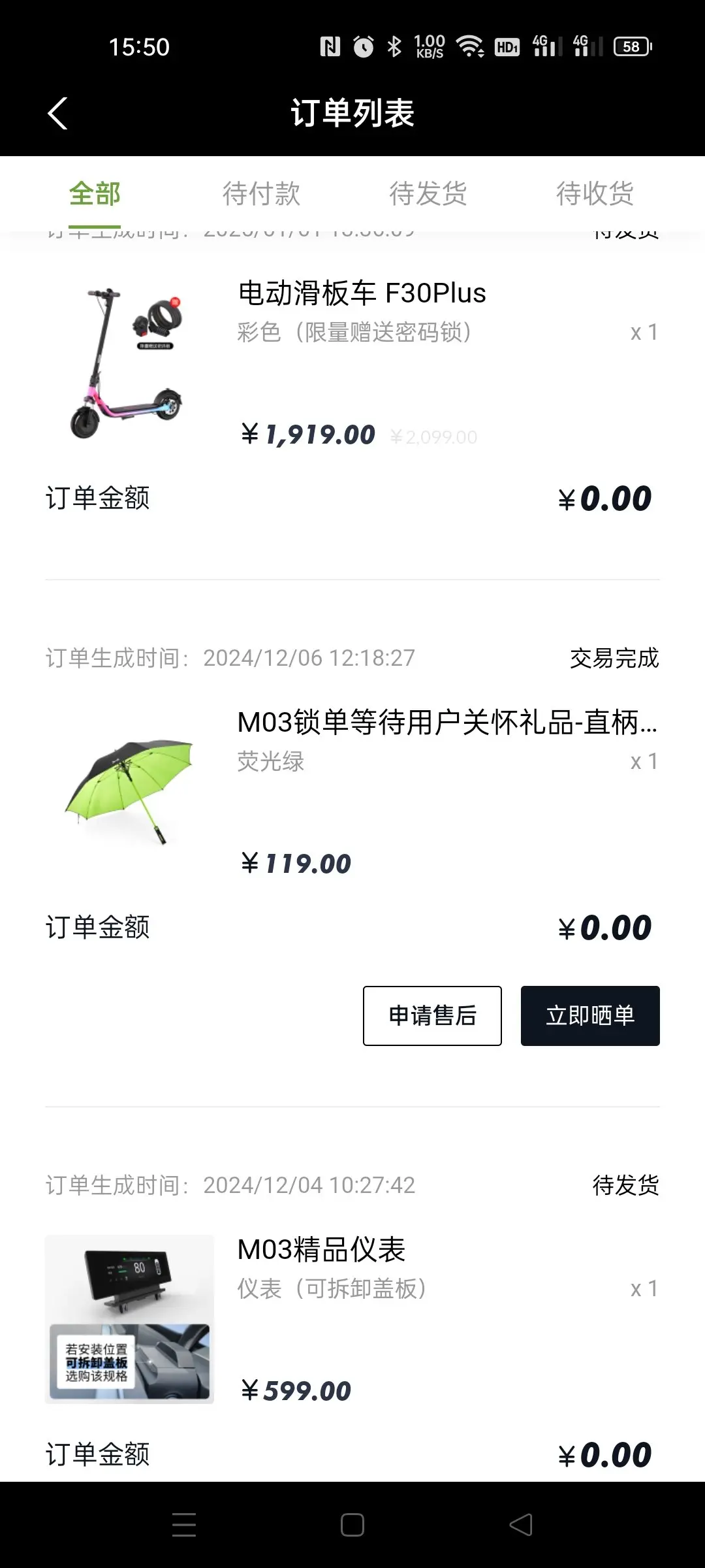 送的积分:之前提车晚了10天左右,送料一部分积分,还额外送了一些积分和礼物,今天刚好券块到期了,,,,,,兑了个滑板车(˃ ⌑ ˂ഃ )。