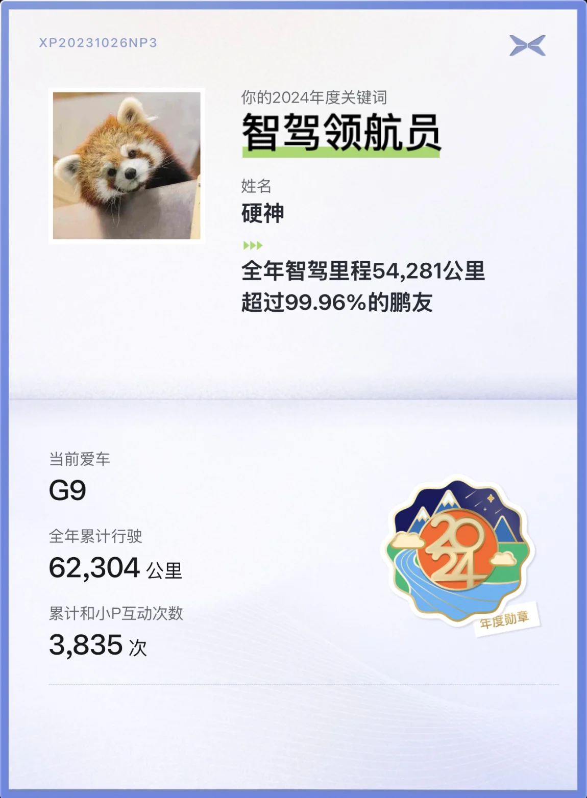 我的2024年度关键词是「智驾领航员」,你也快来看看自己的年度报告吧~我已经在智驾里程排行榜上见识了智驾里程比我高的0.04%的车主,真的猛。