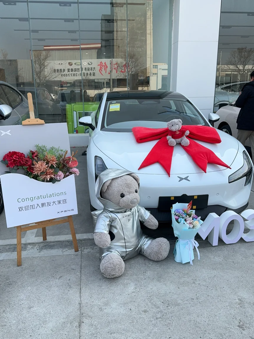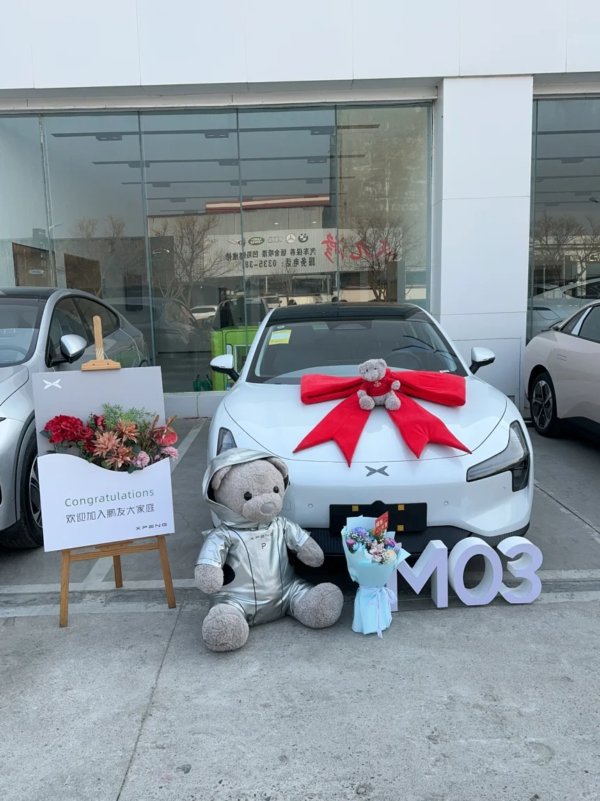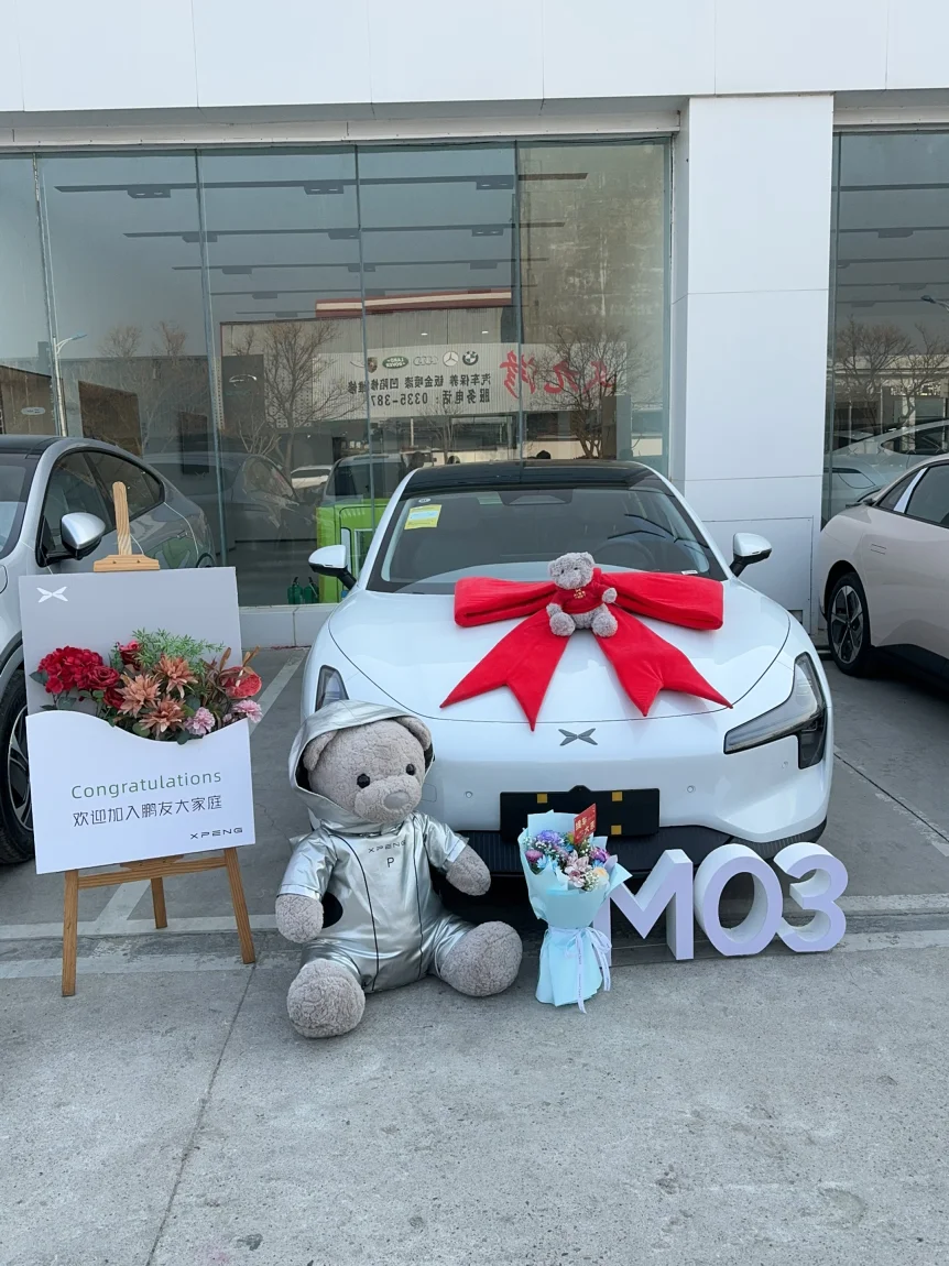 带鹏友回家啦~结婚🎎纪念日送给自己的车[加油]也是送给自己一场全新的体验,看了很多车型,试驾考虑,还是喜欢m03,相信第一眼的感觉祝愿自己永远有探索新世界的好奇与勇气全过程都很顺利,送了鲜花💐,小熊🐻拍了美美的照片,提车仪式,工作人员拍了视频,有很好的提车仪式感。我选的是白色m03,感觉挺好的,而且越看越喜欢,期间一直犹豫车色,因为觉得都挺好看的,刚开始下定米色,但最终选择了白色,想着总也不会过时吧,一切都是最好的安排吧~
