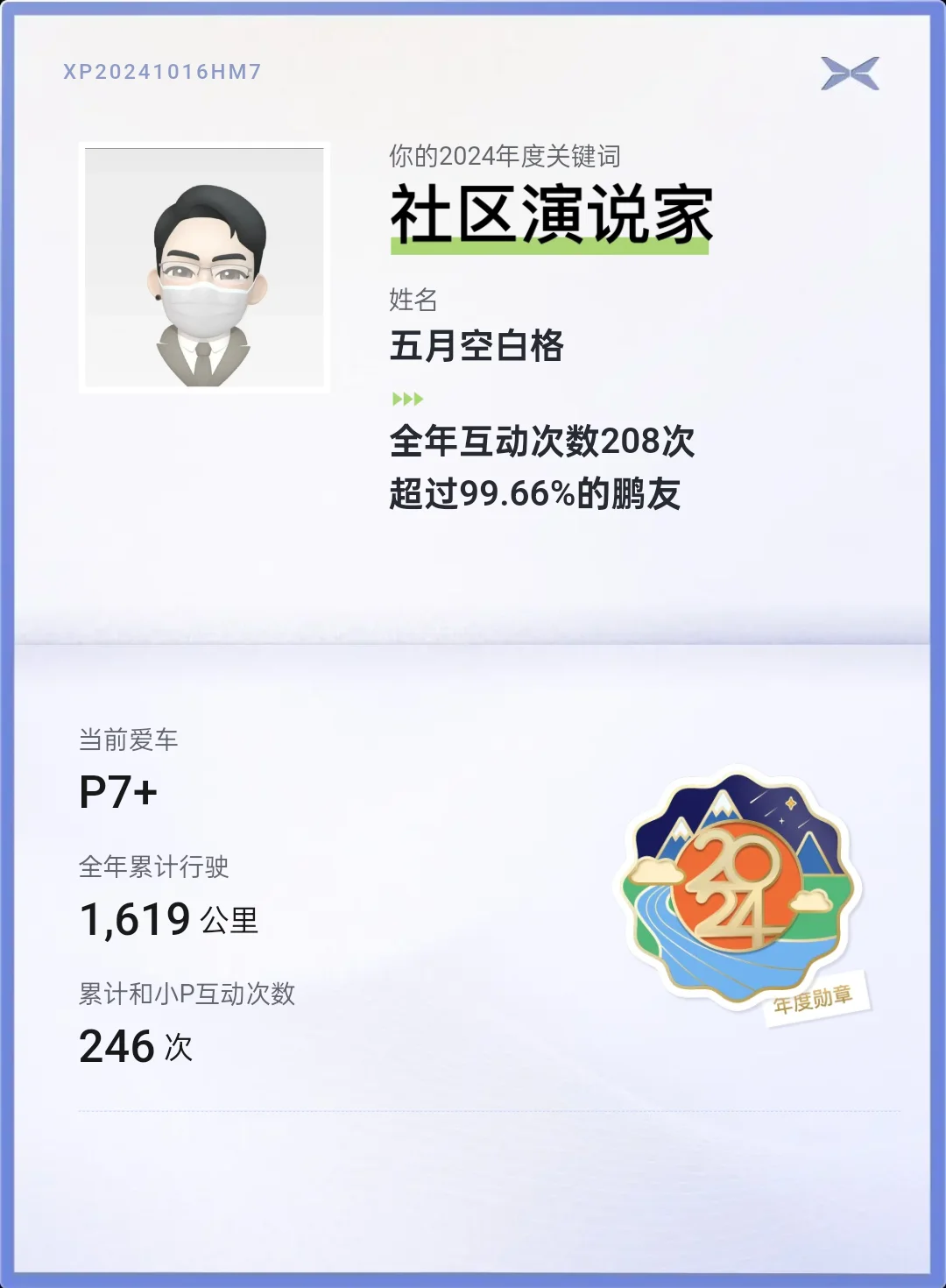 #小鹏汽车2024年度用车报告# 我的2024年度关键词是「社区演说家」,你也快来看看自己的年度报告吧~咦,竟然超越了这么多,过几天就要驾驶小皮琪去一次山东,精力下高速服务区充电还有智驾等等,后续找个时间专门写一下✍🏻