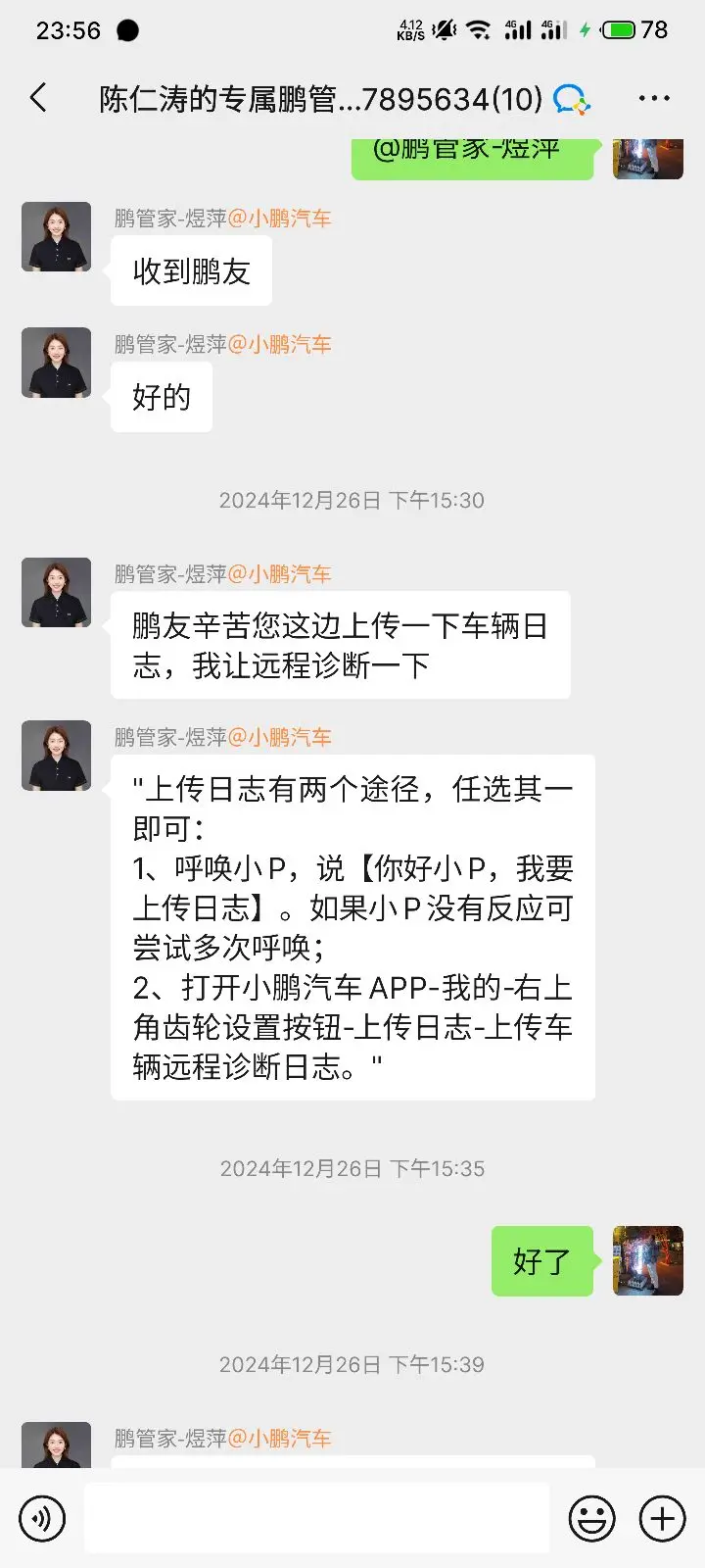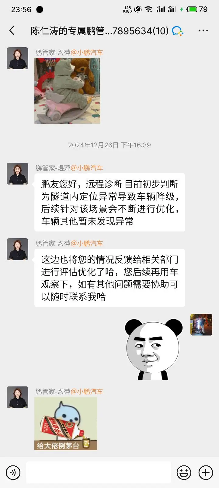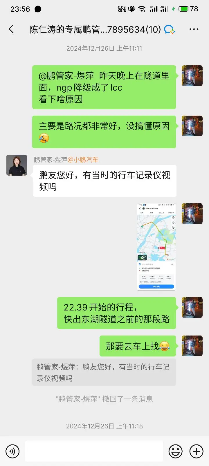 为小鹏优质且高效的远程服务点赞,12月26号我驾驶着小鹏p7+在东湖隧道开着ngp自动辅助驾驶,东湖隧道全长10.6公里,一直是ngp自己在开,在快出隧道的那一段路ngp自动降级为了lcc,主要是那段路特别好没有任何障碍物和危险的潜在兴趣,所以我在群里联系管家反馈了这个问题(也是一样小鹏的智驾越来越好),管家马上给我安排了远程诊断,处理问题非常高效,几十分钟就分析出了问题出在哪里。因为东湖隧道在睡地下几十米深,里面gps信号不好,导致定位异常,所以系统降级成了lcc。这种情况也情有可原,当然希望小鹏能找到方法彻底解决这种问题,希望小鹏越来越好,为小鹏遇见问题不逃避,直面问题的精神点赞。