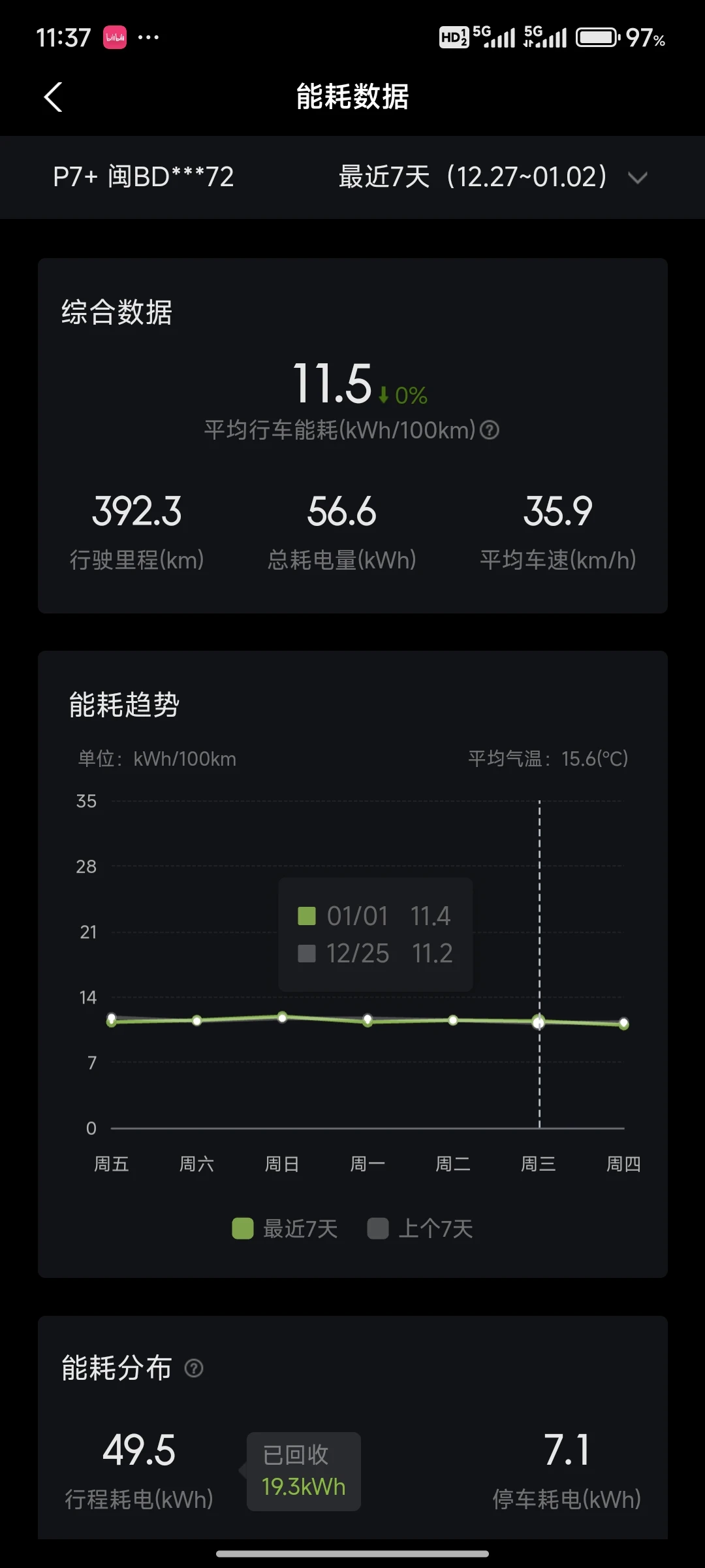 小鹏p7+作为我的第一辆车,令我非常满意,虽然等车的过程煎熬了些儿,但其实不算久一个月都不到,说说这个车的表现吧,首先就是这个能耗表现实在是太优秀啦,刚提车的时候12月份不是很冷,能耗不都超过11,完完全全跑赢了官方标的11.4kWh/100km,用车成本这一块根本不需要担心,再者就是情绪价值,每天下班打开车门,看到这个温馨的氛围灯本心情也会好很多,还有太多想说的话,今天先这样吧,祝大家新年快乐呀!#P7+年度用车记忆#