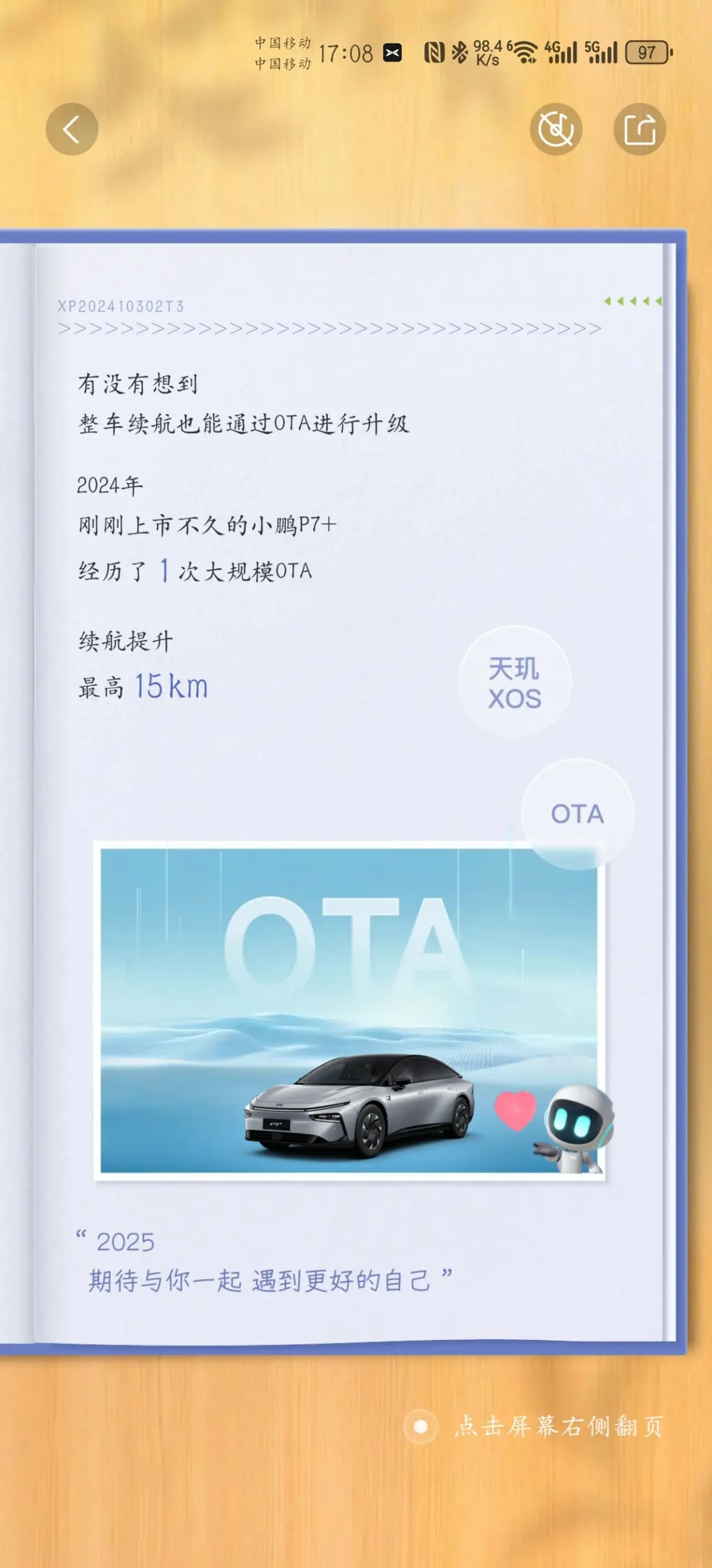 同样也希望小鹏我们把现有的使用过程中很多的不足,尽快在版本的OTA中尽快尽快的把它补足。