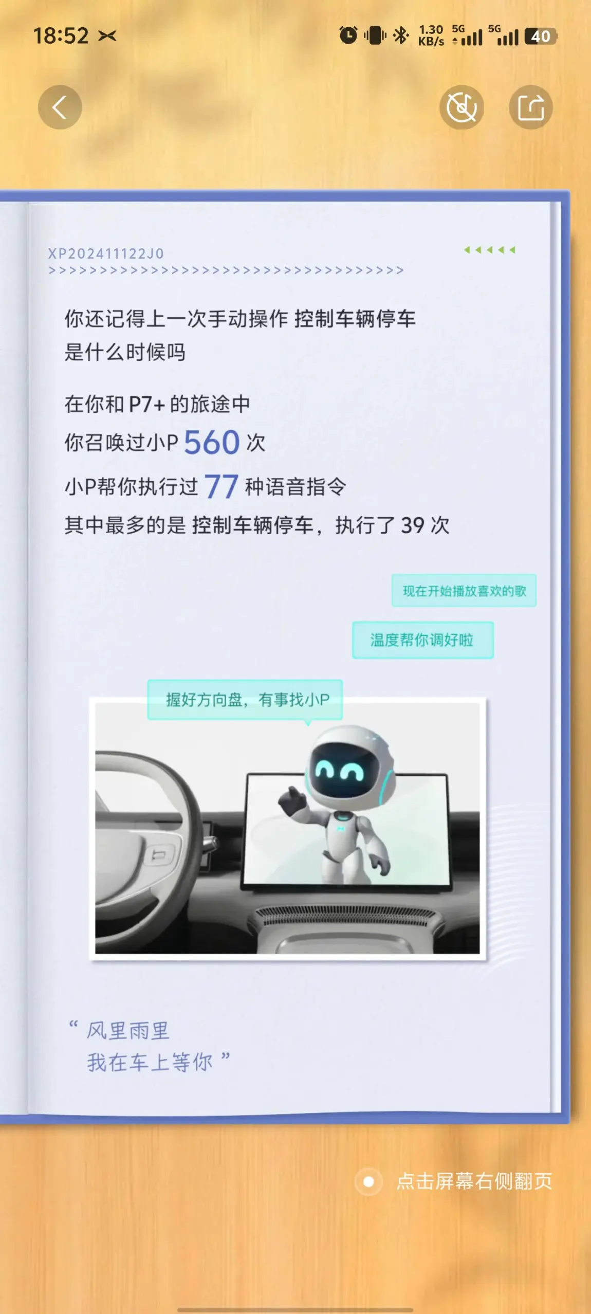 自从有了娃之后,出门走哪里都是大包小包,车便成了刚需了。尤其是超大空间和静谧性以及隐私性极为重要。而P7+刚好满足所有的要求,便成了我的不二之选。P7+超大的储物空间和乘坐空间,以及超低能耗,使得即使偶尔出远门也毫无压力。提车已经快2个月了,我们出门在外给娃换尿不湿、喂奶几乎都在车里边,这也得益于P7+的隐私性极强,后排隐私玻璃,在完全关闭车门车窗下变成了自己的私密空间。P7+ 外放电功能,也使得出门在外用电极其方便。P7+这一系列的优点让我真正感受到了出门在外就跟在家一样。感谢P7+的陪伴,让我们出门在外仍然有像在家一样的感觉。