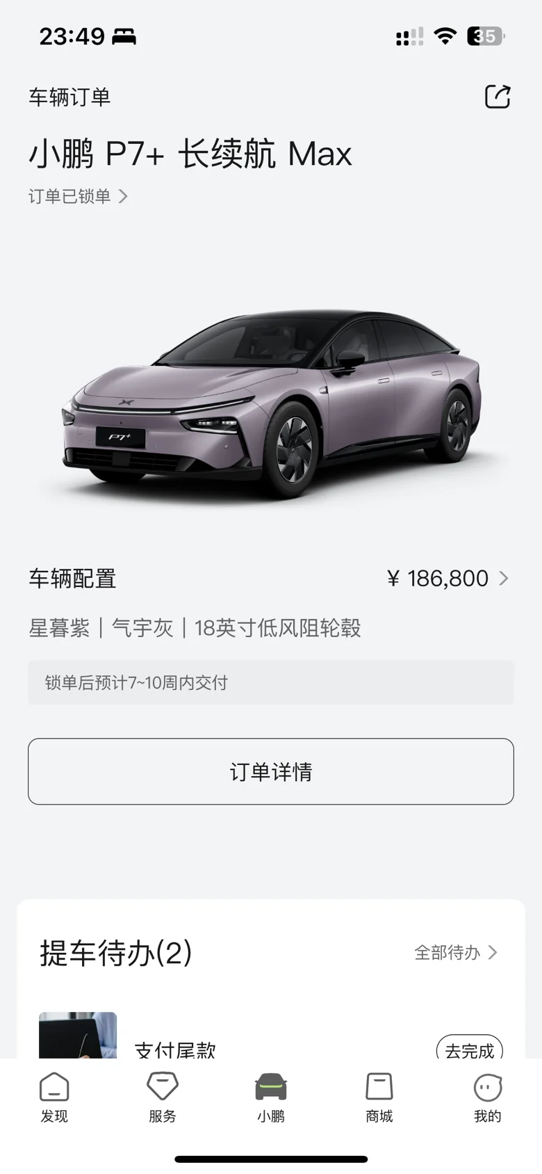 偶然间走到小鹏4s店,一眼被大厅的p7+吸引,坐上去感受了一下,天呐简直是我的天菜,哪哪都吸引我,忍着冲动回家才付意向金。千等万等到了11.7当天,没有定预售车的经验,很晚才下定,果不其然排到了7-10周,天呐‼️一天打开app八百遍。幸运的是第七周就交付了,手续简单很快就办完了,坐上车的那一刻都不真实,不敢相信这么漂亮的车是我的哈哈,一到家就把早已准备好的配件通通安装完毕,保护小p是我的责任🫡。车开了近半个月,看过的人都会夸一句“你的车真好看”,嘻嘻,一个人在车里的那一刻,是难以言喻的愉悦
