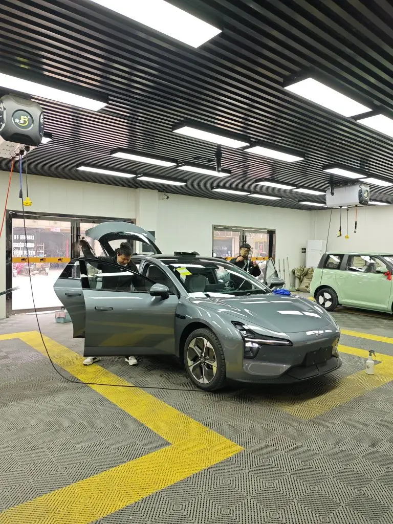 手续办好以后,交付小姐姐带直接带去贴车窗膜,在商城选的强生定制太阳膜-五座整套深色(含安装)用13000积分(抵扣1300元),补了190元!