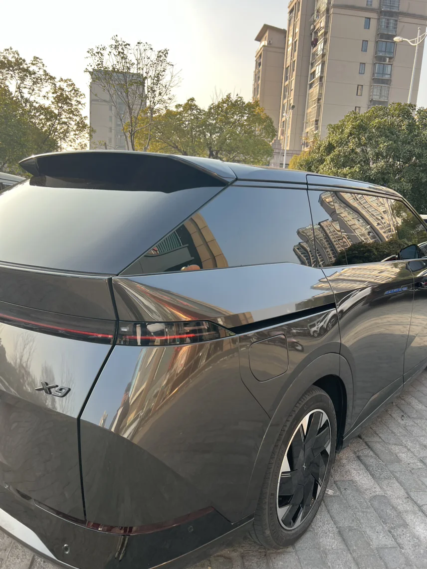说实话我第一眼在手机上看到这个车,还是个金色,我就在想这个车怎么这么丑,包括到现在还是有很多人认为这个车丑,车头丑,车屁股丑,都有吐槽的,但是!我开了一年后我是真的感觉,X9真的是耐看型的,越看越好看的,然后提车就贴了隐形车衣,建议要贴,不然避免不了擦痕,最近又改了个液态金属钨钢十纯黑车标+熏黑膜,星舰赛博味立马出来了。