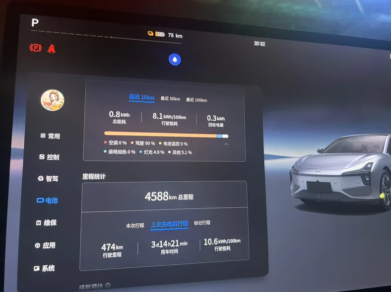 在广东的天气,没怎么开空调的能耗,这续航能跑500公里😌