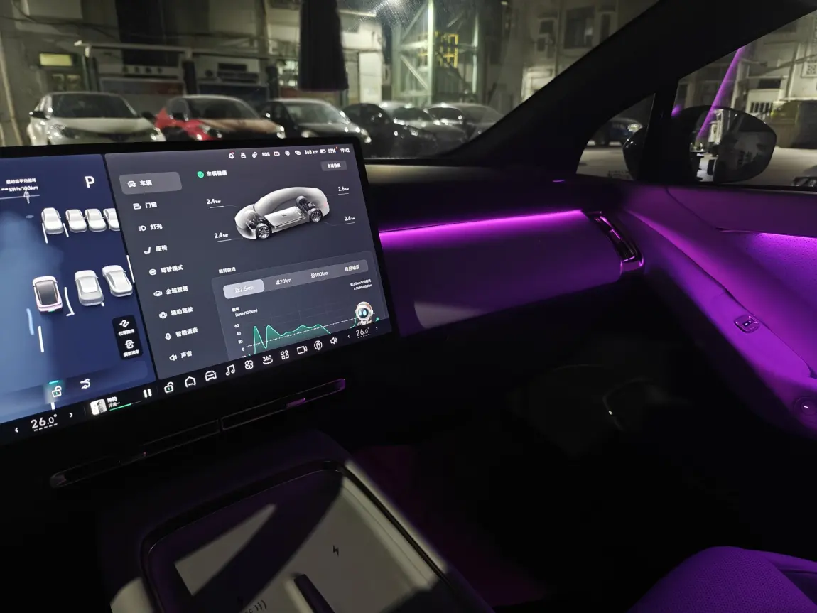 #小鹏影像记录家# 颜值即正义!第一眼看到紫色的P7+就爱上了,发布会后第一时间下定,11月15日提车到现在快两个月了,车子开起来最大的感受就是舒服~停在单位每天都能吸引小猫为我站岗😃估计是被小紫的颜值深深吸引住了。每天下班回家都忍不住要在车上坐一会儿,要么是打开音乐安静的听听歌,看着氛围灯伴随音乐一起律动,不要太惬意~要么是打开座椅按摩,让自己舒舒服服的放松下,享受P7+带给我独处的静谧和舒适😉希望鹏厂继续加电,推出更多更好的产品给鹏友们,让大家一起科技平权~