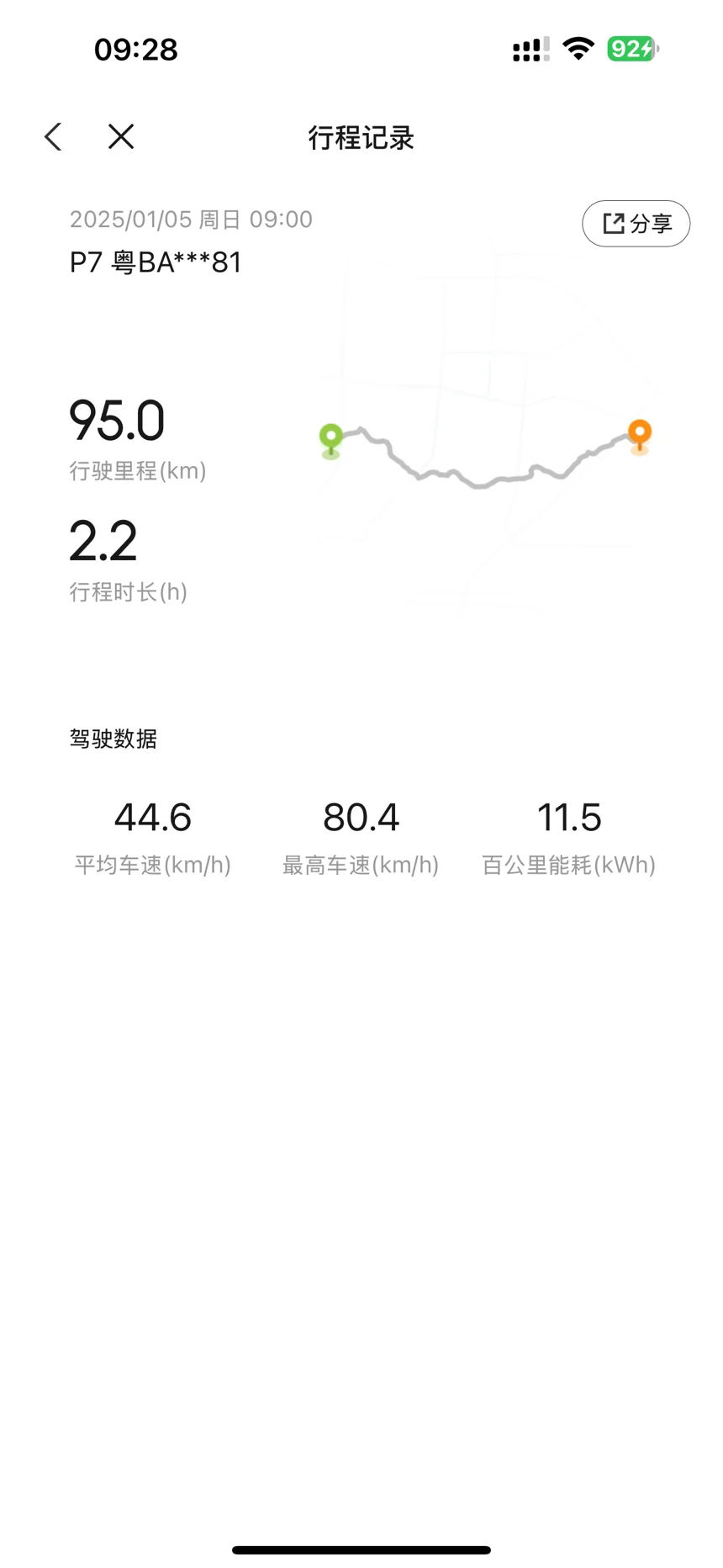 从广西到广东跑国道95公里,这也是第一次尝试,以我对P7的了解,P7在国道上的能耗至少可以做到12kWh/100km,续航至少1:1以上。