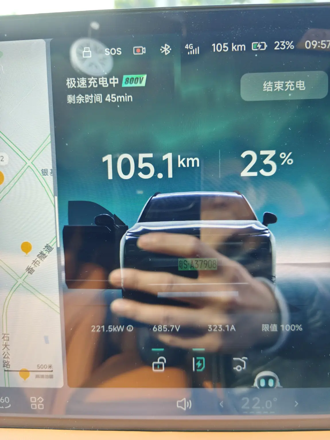 充电:搭配800V平台,20%-80%,超充15分钟,80%-100%要30分钟左右,所以整体充满也不到1小时,家充就很慢的了,充过一次,12点到早上8点,只充到80%,不过家充要的就是方便和便宜,这个对于谁都是一个样。
