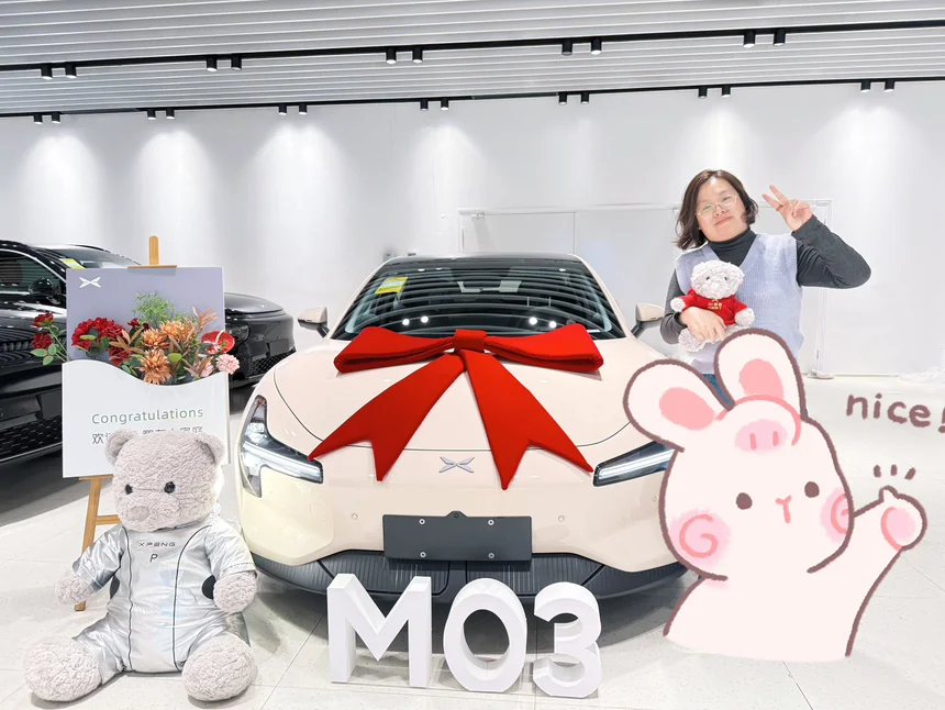 “我的智能出行伙伴——小鹏M03!🚗💨 从今以后,科技与舒适相伴,颜值与性能齐飞!不管是日常通勤还是诗和远方,小鹏M03都能带给我全新的驾驶体验!✨ 智能辅助、豪华配置,每一处细节都让我惊喜连连!🌟 未来的每一段旅程,我和小鹏M03都会一起启程,探索更多可能!💫 从提车的这一刻开始,幸福感直接拉满!🔥”