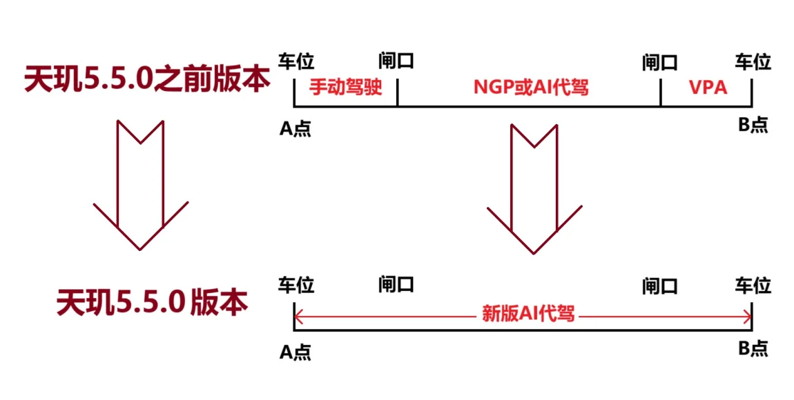 可以这样理解,天玑5.5.0系统把原来的“记忆泊车”概念完全纳入了NGP的范围,就像数学里的“整数”和“分数”都属于“有理数”范畴,这样相当于简化了“智驾”的概念,不管是在市区路面还是地下车库,只要下拨杆就可以开启“智驾”。