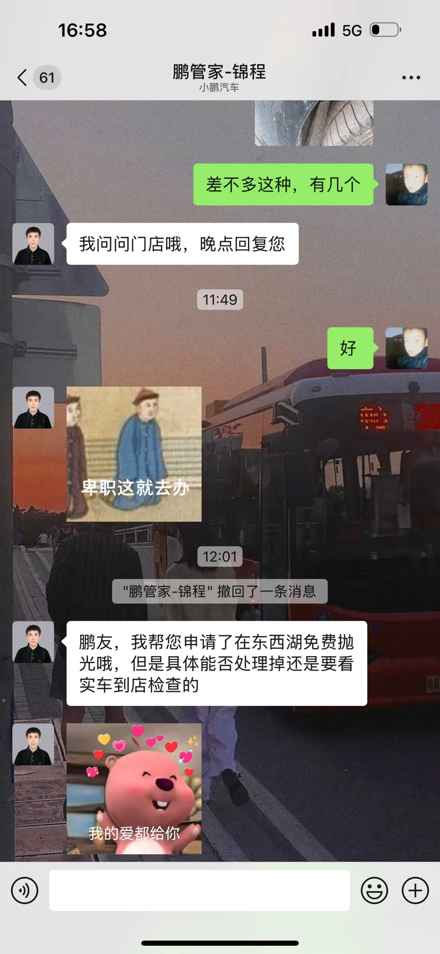 小鹏的售后服务很好,重点点名锦程哥,执行力强且处理能力强。