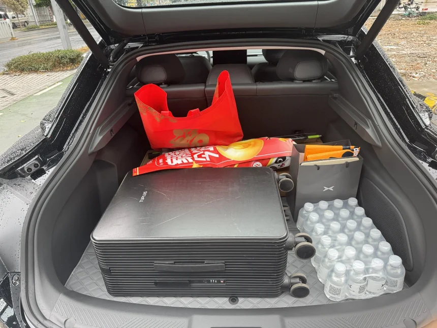 第二天早上把行李都放进行李箱,小鹏MONA的后背箱成了我的“超级收纳神器”,掀背式后备箱放行李很方便,容量也很大。