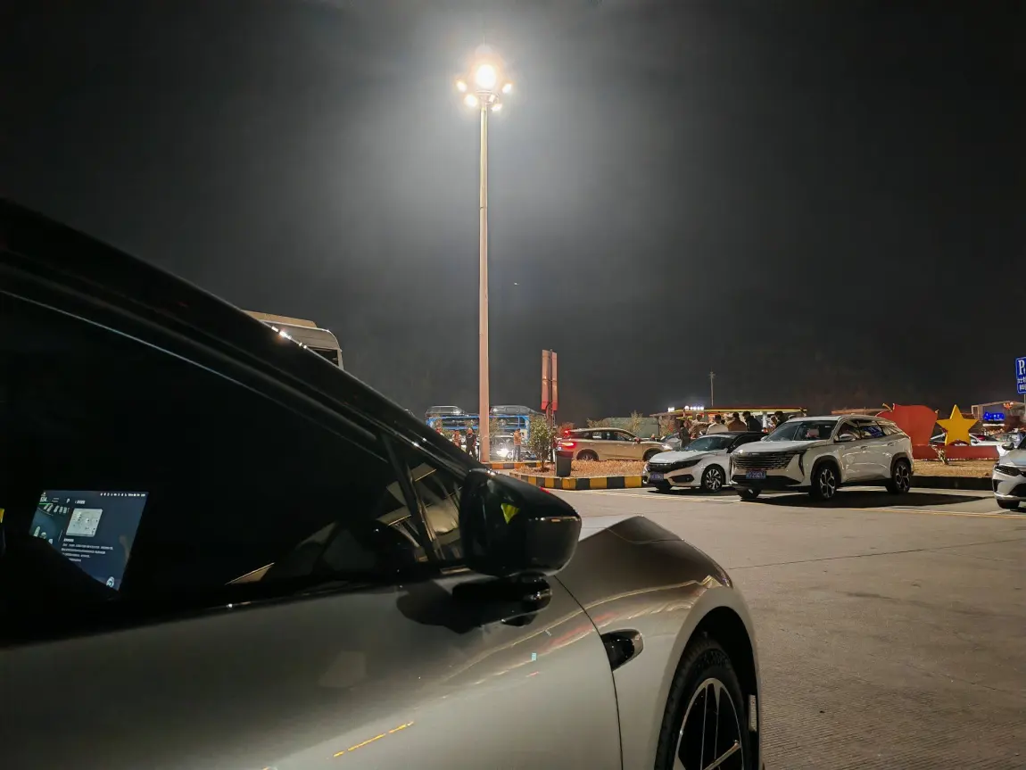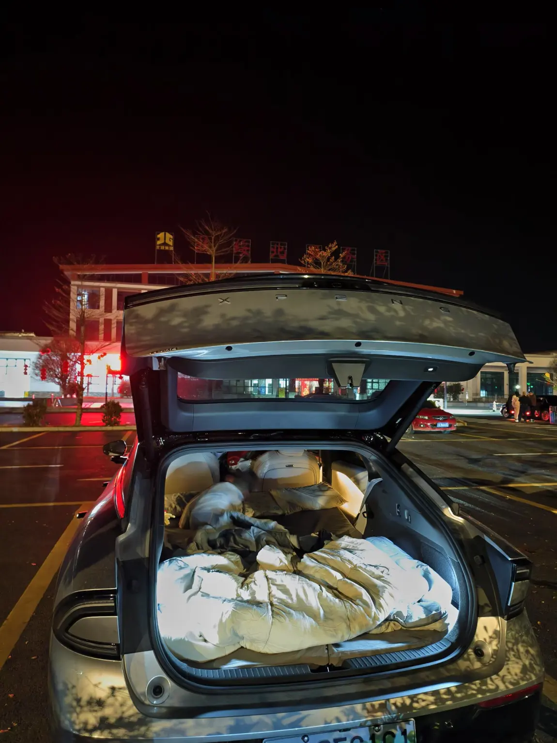 由于路程遥远,我们在途中的几个服务区进行了充电。小鹏P7+的充电速度很快,每次都能迅速补充电量,让我们继续前行。在其中一个服务区,我们甚至在车上过夜。车内空间足够宽敞,我们铺上睡袋,是一种独特的体验。