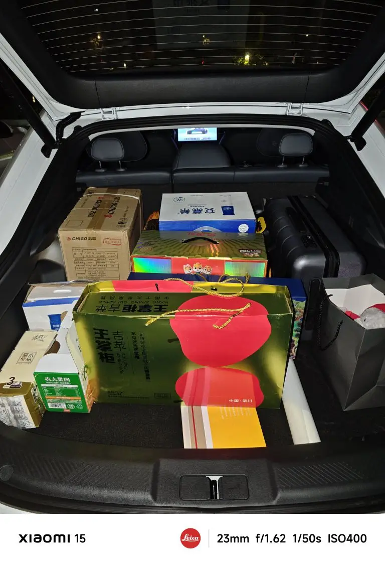 小鹏mona超大后备箱,公司发的福利全部装下了,点赞。服务区充了一次电,快充充电很快,也很给力。途中部分路段遇到了堵车,回家全程总体还是挺顺利的。