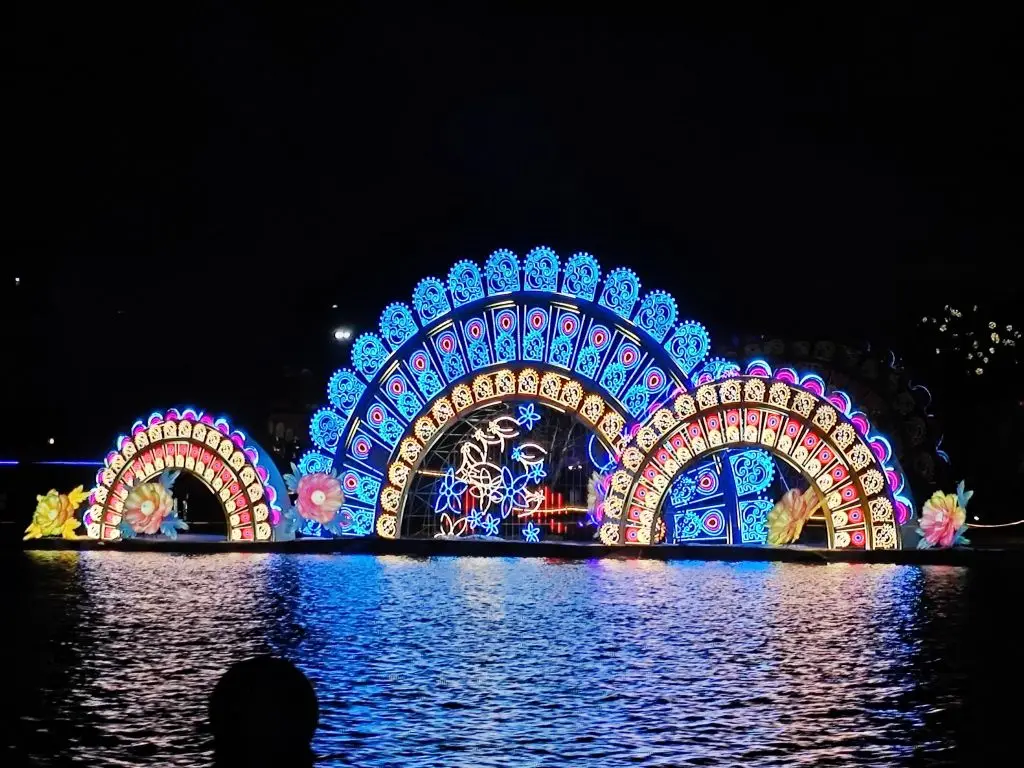晚上坐游船游览了凤城河景区,夜景灯展很漂亮。游船40分钟,60一个人。