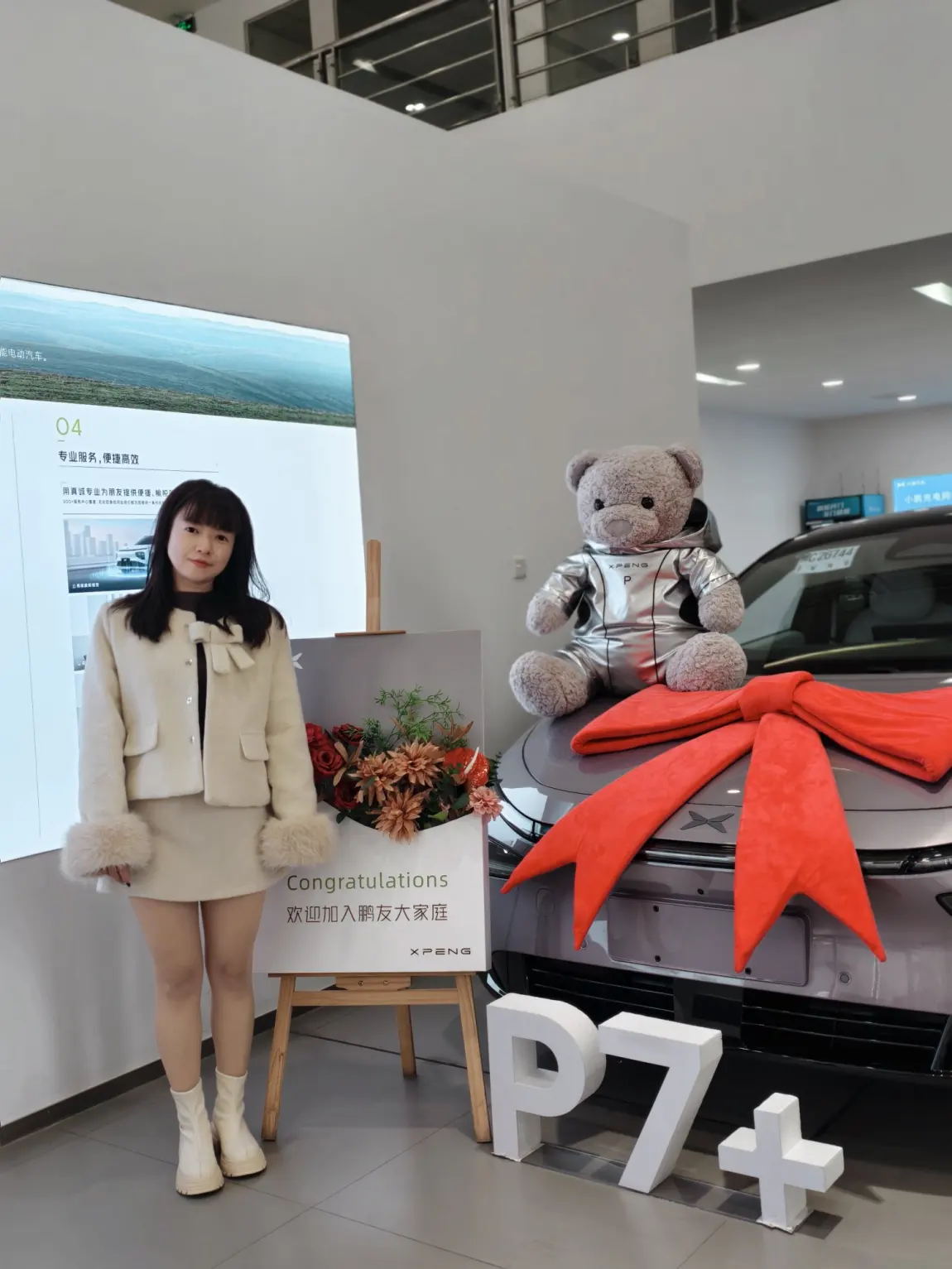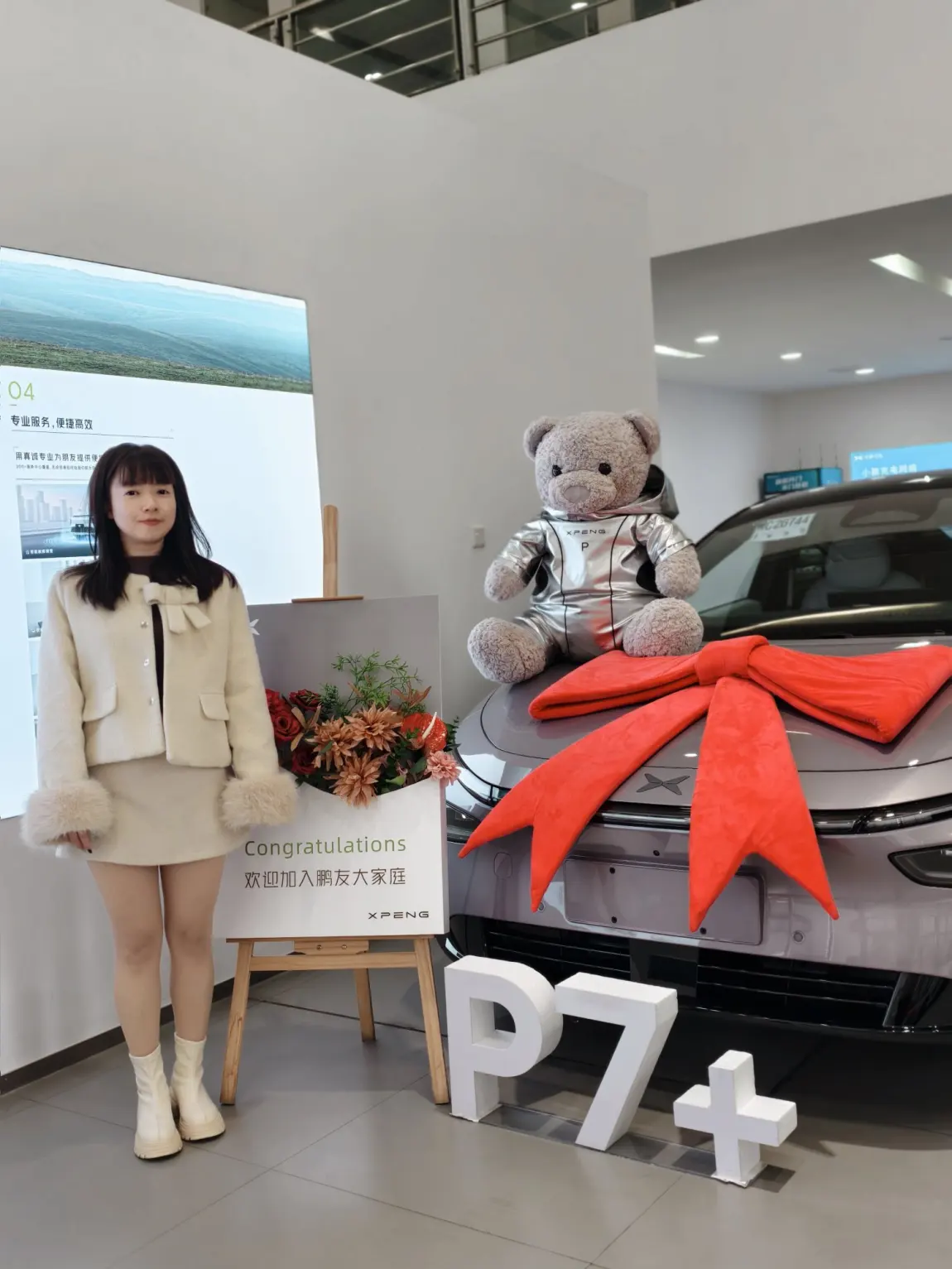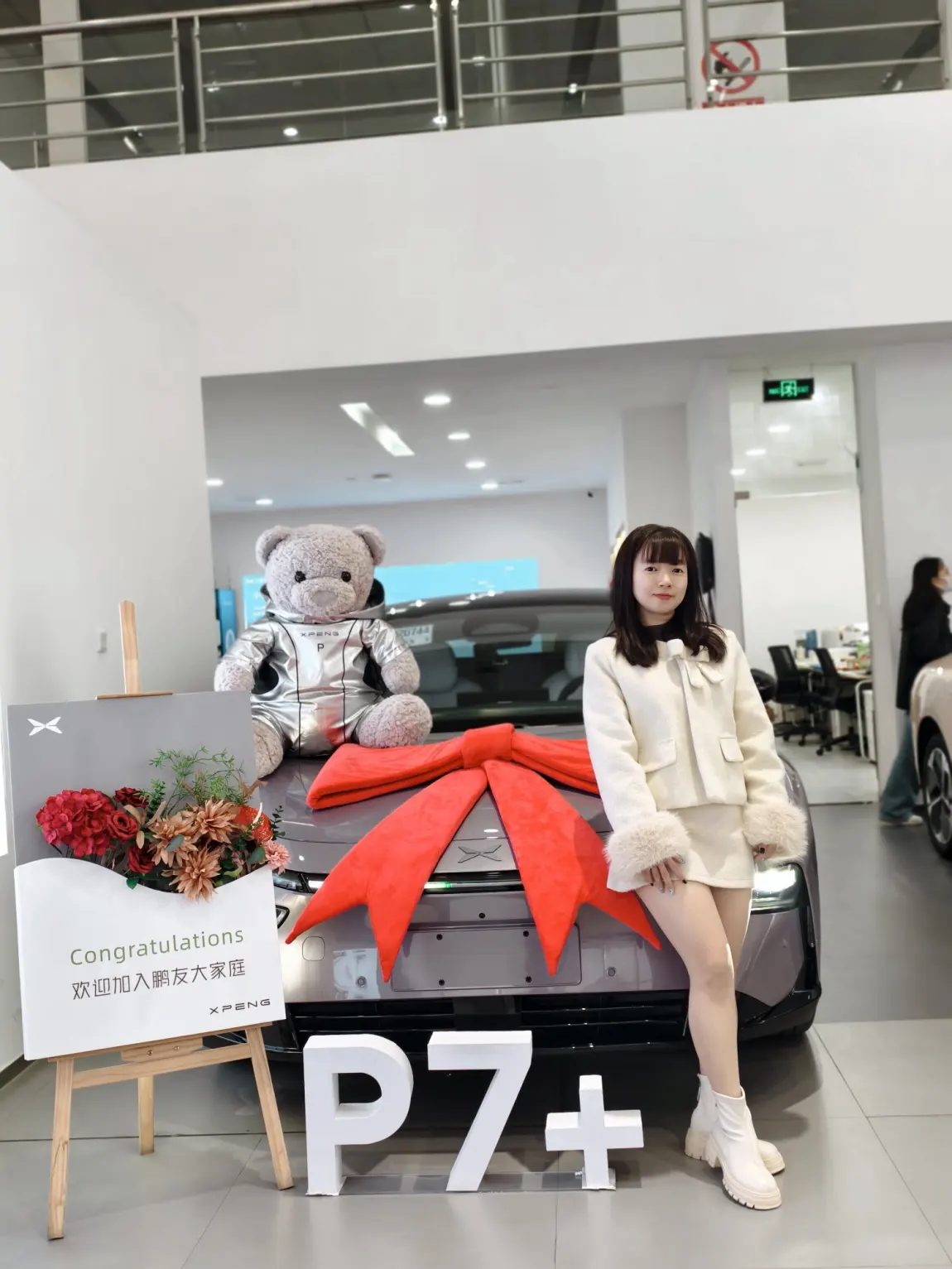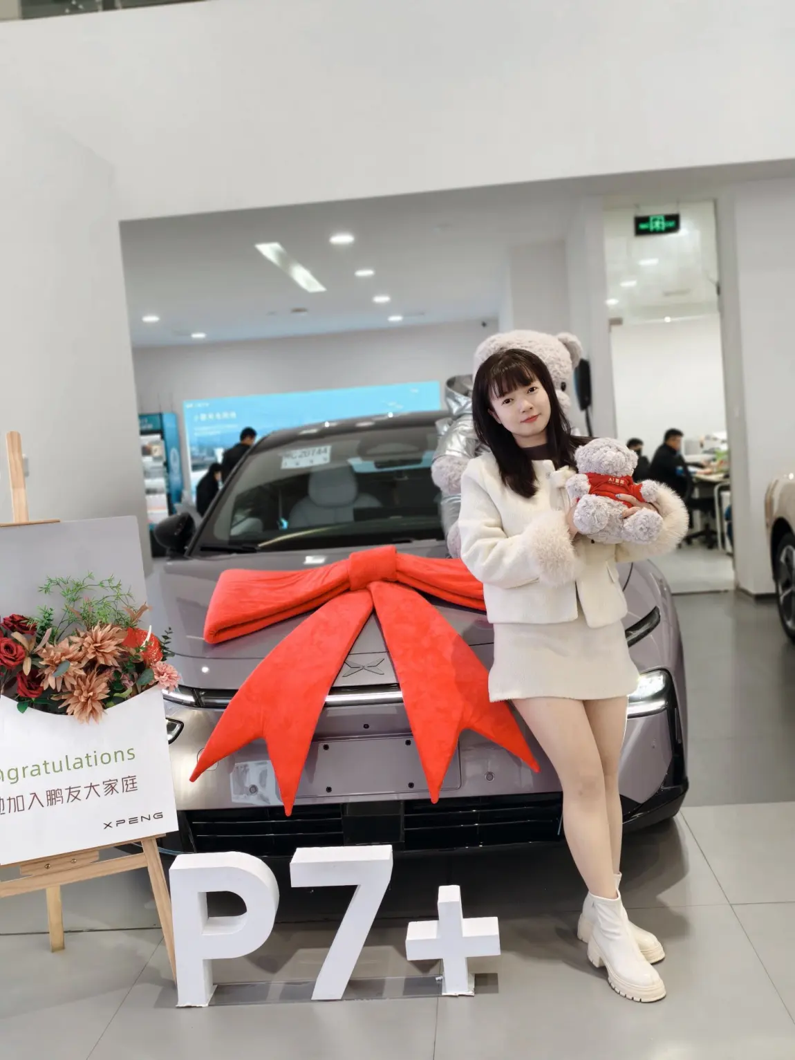 #小鹏汽车# #小鹏提车##小鹏P7+首批车主火热提车# 1.26日提车,终于把我等了两个月的小鹏 P7+提回来啦。交接的小姐姐很温柔,耐心地介绍了各种功能,情绪价值满满,也帮忙拍了不少好看的照片。开了半个月,很满意呢,一辆水桶别,没什么槽点。