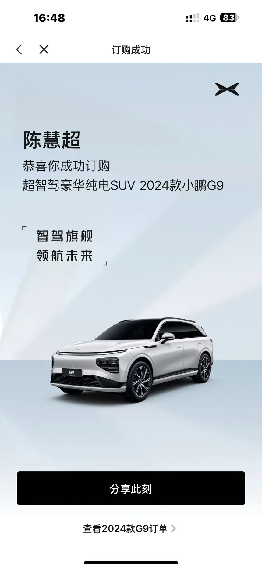 #我的提车作业# 我和我老婆24年初就打算换车了,先后对比了特斯拉和蔚来,24年5月份去看的小鹏,我老婆进门一眼就看中了G9和X9,奈何资金紧张,等到11月份综合考虑决定提G9,等了一周时间终于提到心爱的小九😊。现在开了5000多公里,昨天做完首保,用车这段时间小鹏 G9 给我带来了很多惊喜,它的颜值、内饰、性能、智能配置都让我非常满意。当然,它也不是十全十美的,比如车机交互系统小P感觉还不是很智能,在东北,冬季的能耗和续航还是不那么尽如人意。但总体来说,小鹏 G9 是一款非常优秀的纯电SUV,它让我体验到了智能出行的魅力。下一辆车,老婆要买P7+😁😁😁!
