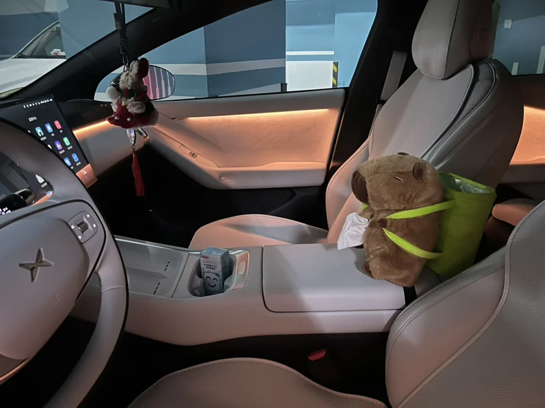 一周后,我们迎来了年轻的小伙伴p7+。当电门第一次踩到底的瞬间,绝绝紫一闪而过。"小P,打开座椅按摩"脊背传来的按压感让我仿佛回到了家里的沙发上。没有引擎的轰鸣,只有轻柔的风声与轮胎摩擦声编织成的白噪音,中控屏上的导航自动规划出路线,像是未来在发出邀请函。