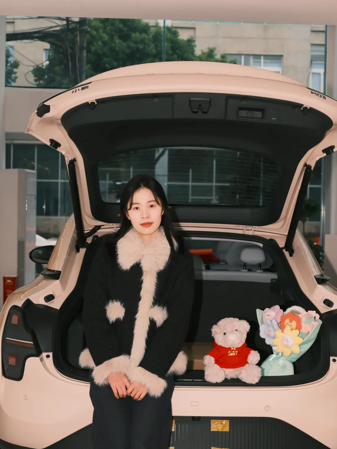 提车出片两不误啦,坐标德阳,2025年2月22日,带上富士相机拍小鹏M03提车!又可爱又美丽的m03车车,等了2个月,还好今天提车的人少,社恐人静静的拍了一会儿,比耶!