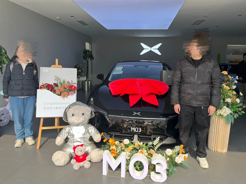 终于提到mona3了。因为锁单时m03实在太火爆了,所以从下单到提车大概等了超过6周。小鹏的交付中心服务很贴心,工作人员耐心讲解了所有功能,还准备了交车仪式,拍照、鲜花一样不少!销售也真的很好,两次上门给我试驾服务。外观:Mona m03的设计真的太戳我了!流线型车身+隐藏式门把手。内饰:简约大气,座椅是皮质+翻毛皮的拼接,坐上去很舒服!中控大屏很清晰,操作流畅。3️⃣ 车机智能化和辅助驾驶分享 车机系统:语音助手“小P”真的太好用了!导航、听歌、开空调,一句话搞定,完全不用动手!希望后期融合天玑系统会更好。小鹏Mona m03真的是一辆性价比超高的车!颜值高、智能化强,驾驶体验也很不错。如果你也在考虑入手一辆新能源车,强烈推荐去试驾一下。