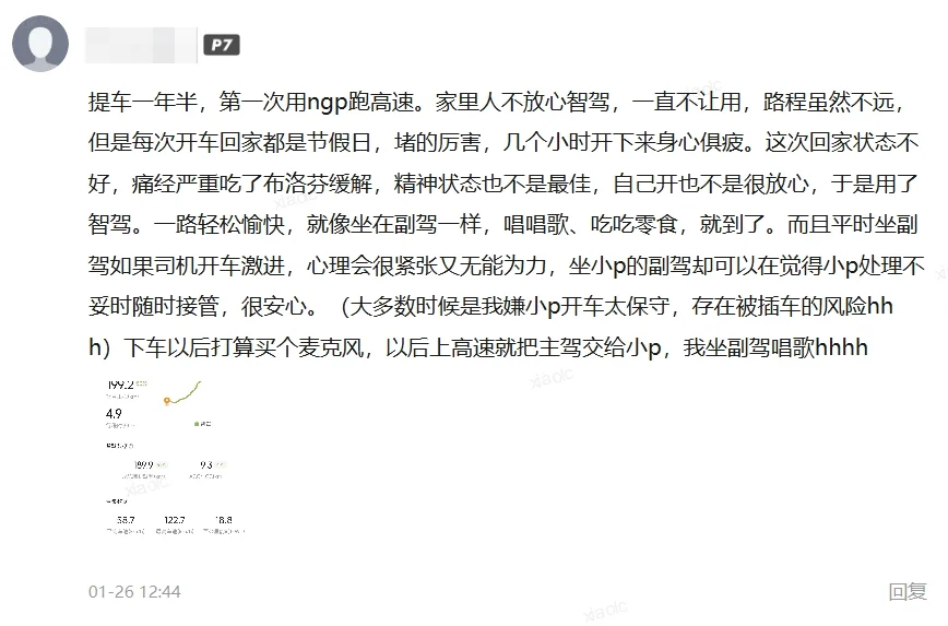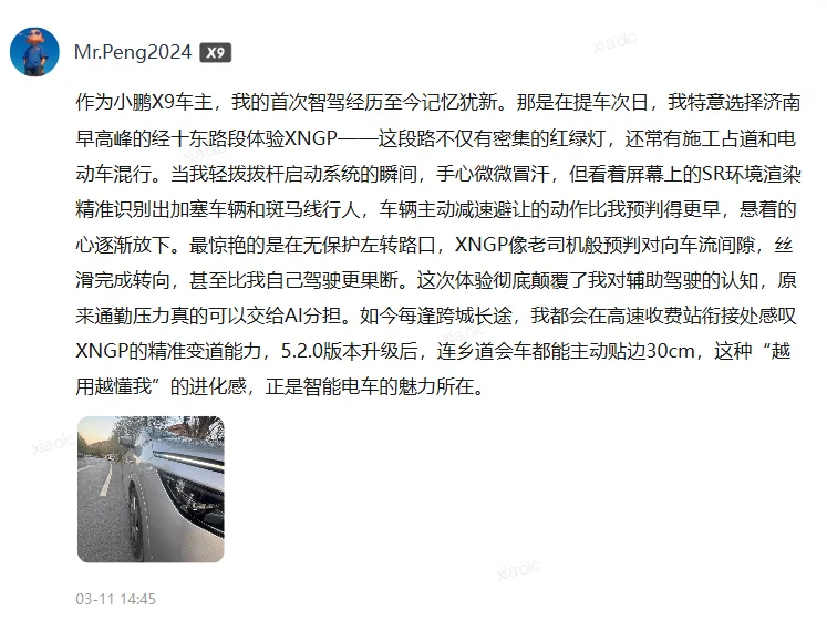 最近,小助手发现有许多鹏友分享了自己的智驾经历,这些经历记录着鹏友们使用智驾过程中的欢乐与温暖。其中还有不少新鹏友分享了自己初次使用智驾的难忘经历。