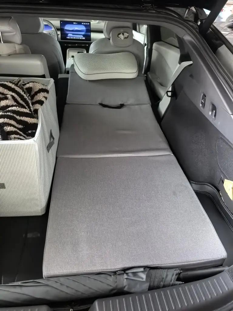然后近两年一直关注新能源,可能我最初的第一需求和很多人不一样,我是想要睡午觉的,第一条件必须后排能快速打开摊平睡觉,p7+车够长,后排掀背,轴距3米,后排完全放倒有接近2米长度,就是第一吸引我的卖点!对于中年男人来说,没有什么比舒舒服服睡个安静的午觉更能放松自己了!