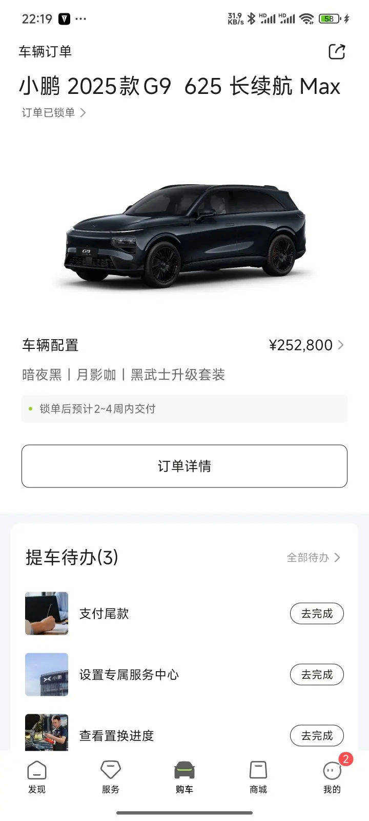 #晒全新小鹏G6G9大定锁单# 本来一开始都没打算小鹏的,发布会前一天体验了朋友的g9,空气悬挂真的震惊到了,让我体验了下什么叫舒适。买车本来心理预算在22的,看了发布会,咬咬牙还是上了。现在就等提车了,希望清明节前能开上回家,天天都在打开APP看进展,可着急惨咯