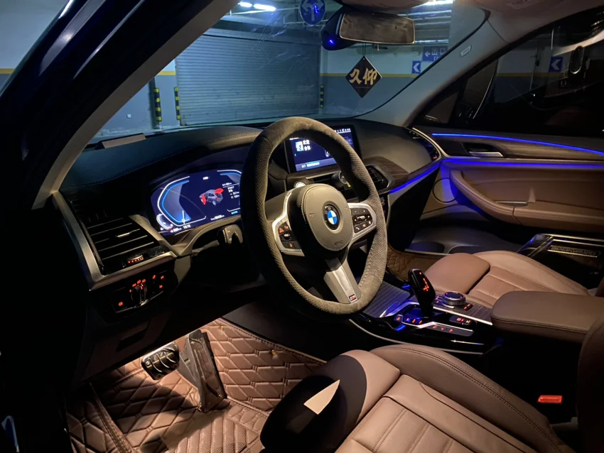内饰配色:选择“深空灰”主题,搭配超纤绒顶棚和四门皮质包覆,触感细腻,格调高级。
