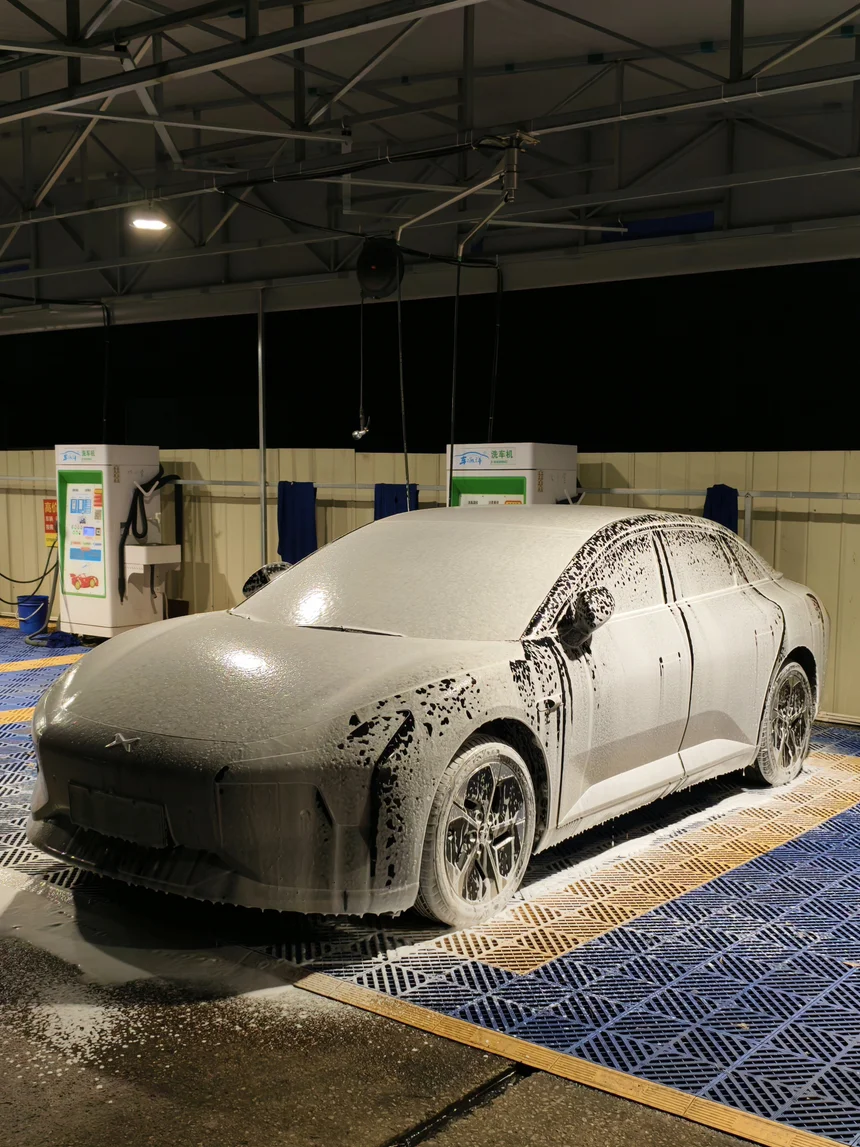🧼自助洗车就喜欢看这一幕,满车的泡沫/晚上的自助洗车店都没人,一个人沉浸式洗车,好爽啊。自己洗车,真的是一件很解压的事情。/#小鹏MONA M03颜值美学# #小鹏MONA M03# #买小鹏前VS买小鹏后#