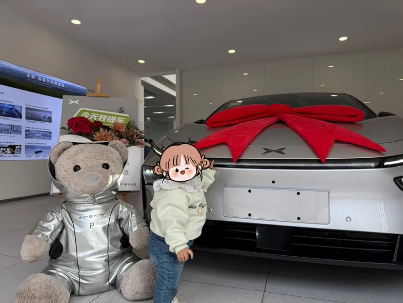 #我的提车作业# 关注小鹏很久了,哈哈哈哈哈哈哈哈终于提上我的车车啦,从下定到提车个把星期搞定,快速高效!标配真皮座椅+通风按摩、无边框车门、带灯镜子还有巨大的后备箱,美观实用,还有360全息影像,新手开起来也没有压力。车虽然长,但是可以自动泊车也没啥影响,超超超超级喜欢!
