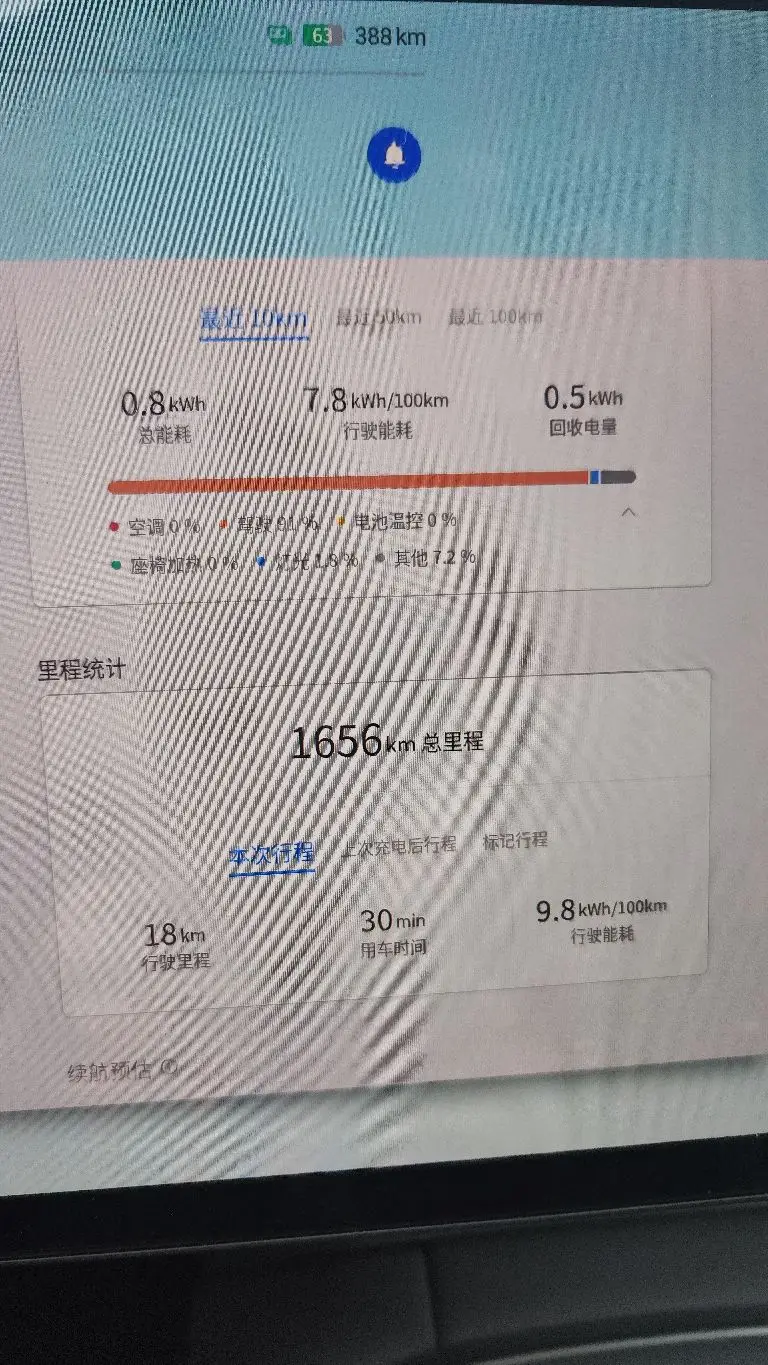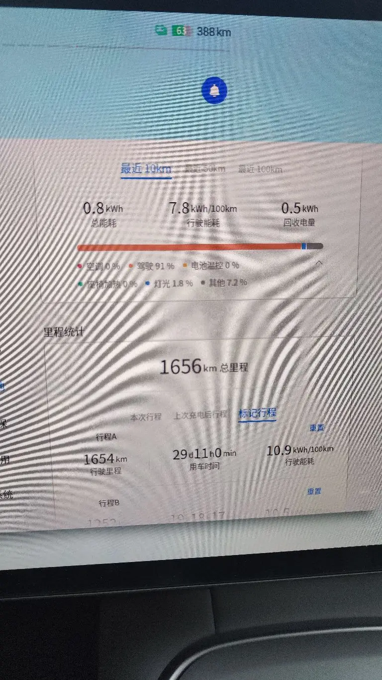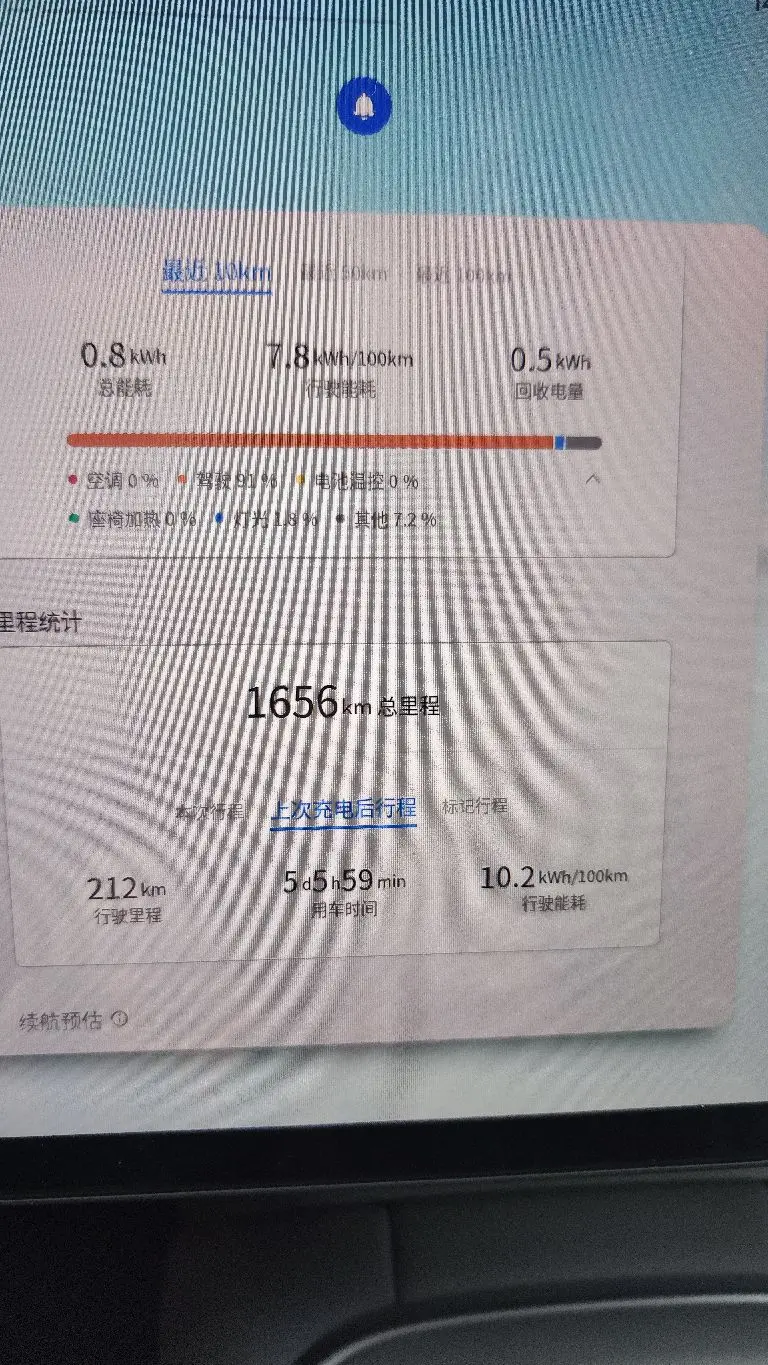 城市路况:单程10公里通勤(拥堵+红绿灯),开启经济模式+动能回收,电耗稳定在9-11kWh/百公里。温和驾驶时(时速60km/h以下),甚至开出过7.7kWh的极限数据。