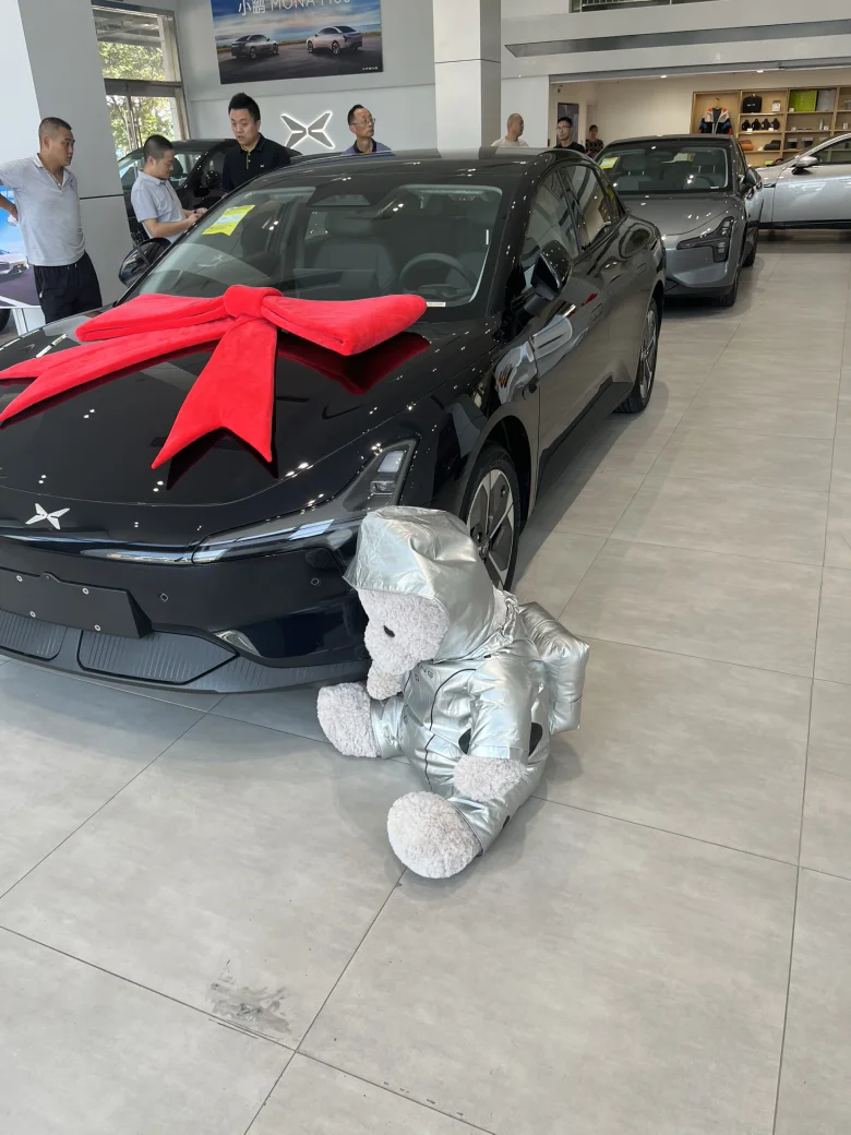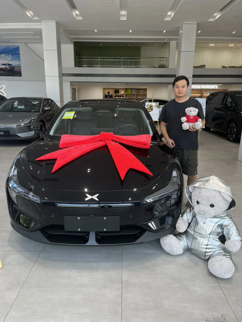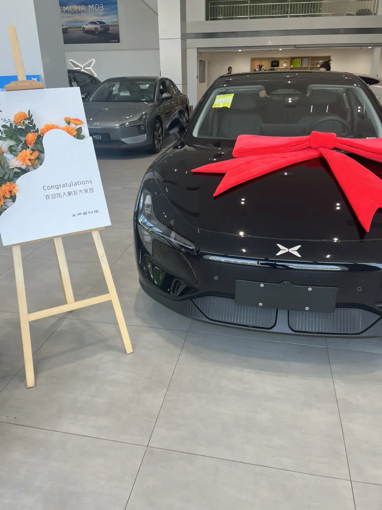 终于接到了销售的电话,车子到了,就一家人开开心心的去4S店提车了,补齐了尾款。标配提车礼包,里面有天幕遮阳帘,脚垫,U盘,小熊,销售又格外送了全车的玻璃贴膜。见到了自己的小鹏MOMA M03 真是帅啊,选的黑色外观,觉得很帅气,比其他颜色更加动感,帅气,开了一圈感觉很好上手,车小巧比较好操控,模式调成了单踏板,和特斯拉的动能回收一样调到最强,也很好用,丝滑的感觉和特斯拉区别不大,主要单踏板习惯了,可以很少用刹车,不仅省刹车片,开起来更省力!