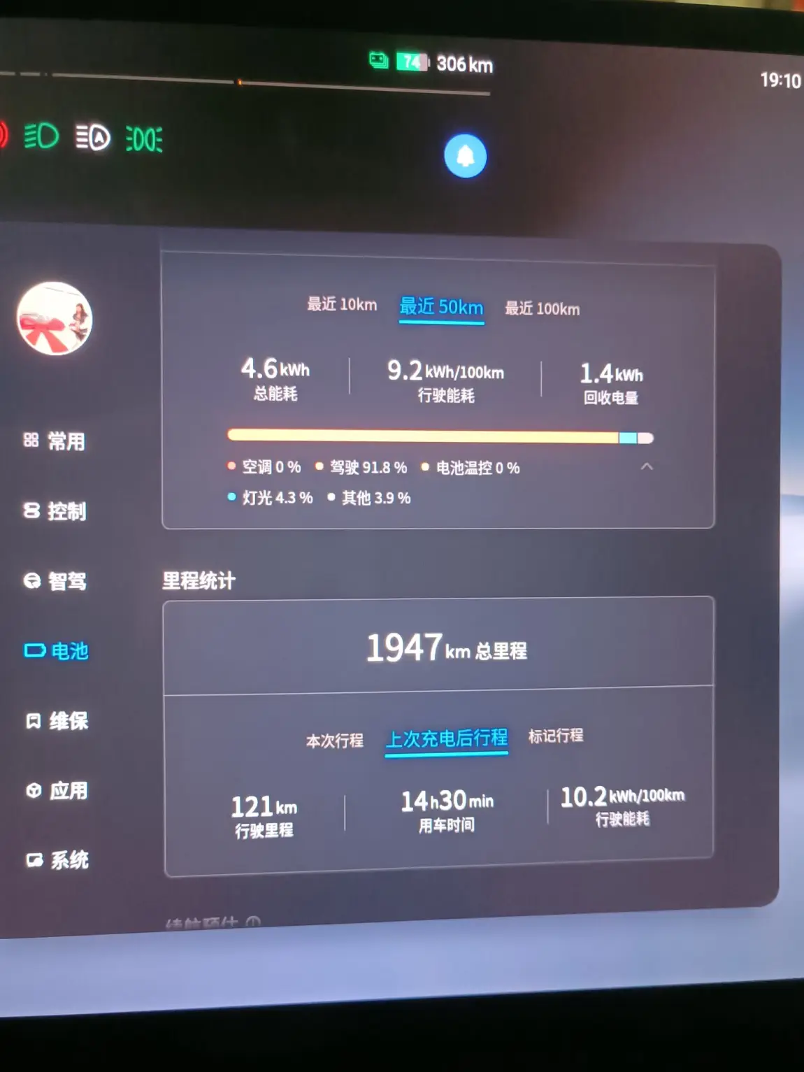 上周充满电上4天班后再跑了160km高速(没有开空调),余下电量可走里程是89km,实际里程走了390km(忘记拍照了😢)~合算里程有480km,超乎预期✌️