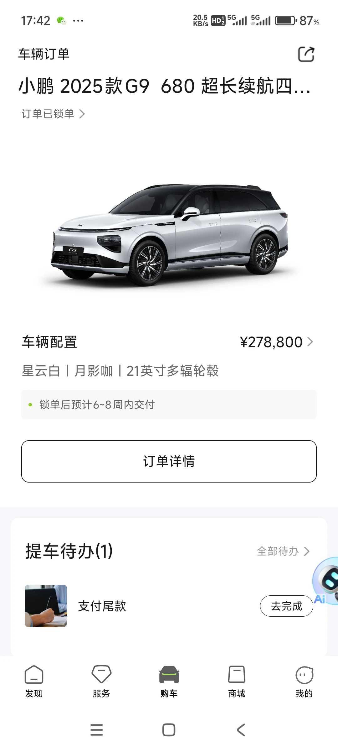 选了很多车,最终选择了小鹏,期待能尽快提车,在以后的日子里,小鹏伴我出行!