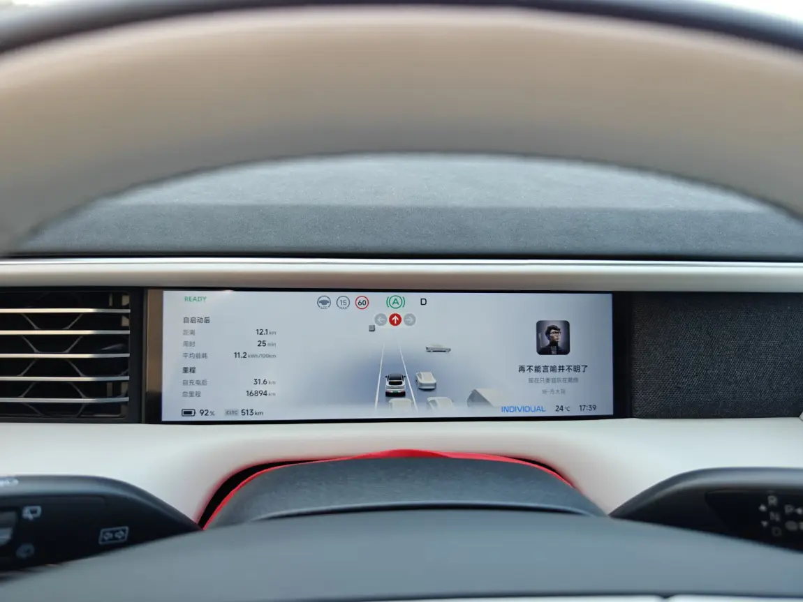 —行程结束后,总共行驶1小时,里程来到24km,表显电耗来到9.7kwh/100km,表显剩余CLTC续航为503km,相当于22km的CLTC表显续航开了24km!,CLTC续航达成率接近110%!