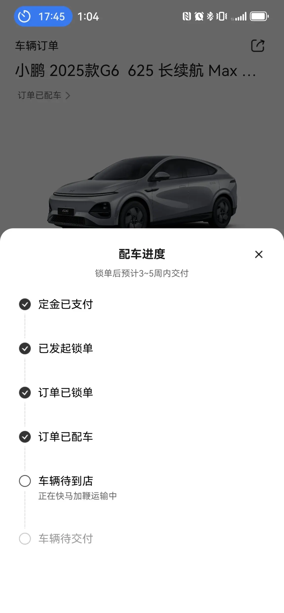 终于配车了。从15日开始不知道每天点开多少次,多少次的等待,换来你离我更进一步。
