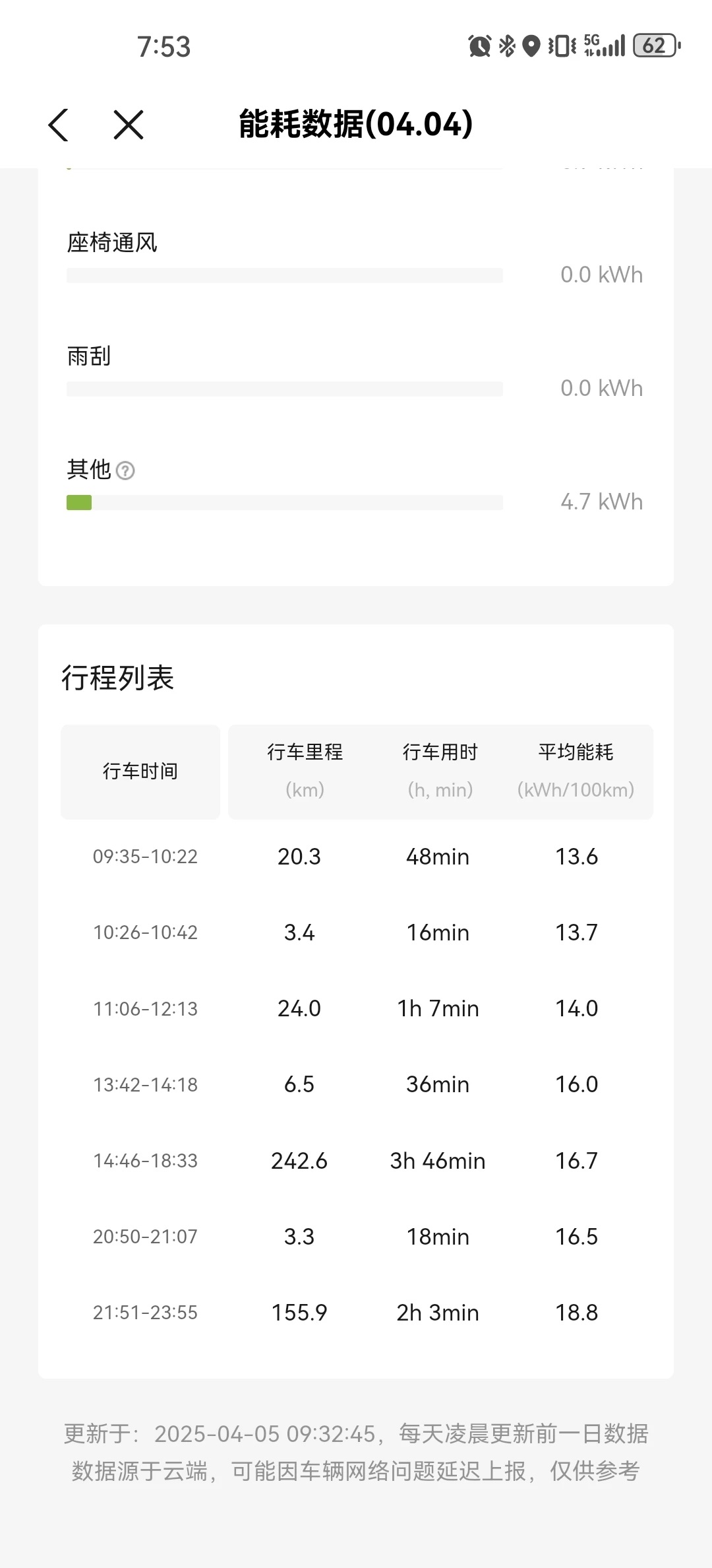 第一次高速看了一下,五人满载,顶着110-120KM的限速开,中途小堵了一段,续航达成率居然90~95%的样子。电耗也不高。还是有点超出预期的。