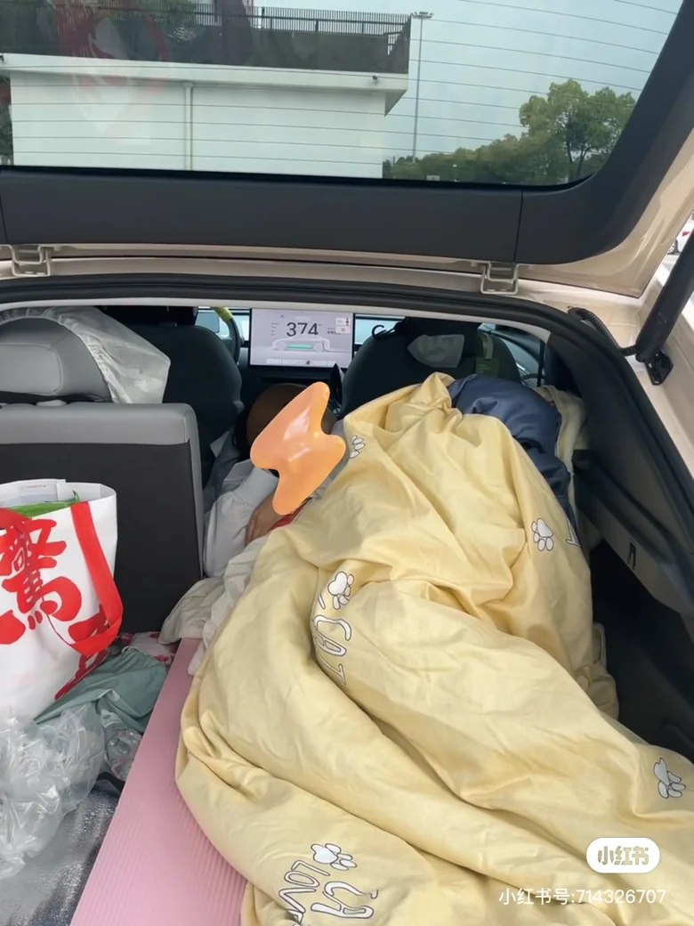 这次自驾游解锁了好多新成就,比如第一次开宽不到十米的浙江乡道会车,比如两天开了快600公里,再比如……去的时候是服务区充电休息了半小时,我打开后备箱原地睡觉。回的时候一口气从安吉开回上海,申嘉湖高速体验尚可。想速度激情就自己开库库变道,想休息一下吃吃喝喝就找个大车开巡航跟车。唯一遗憾的就是司机不能欣赏沿途的风景,转脖子但凡超过两秒就开始滴滴滴🤨