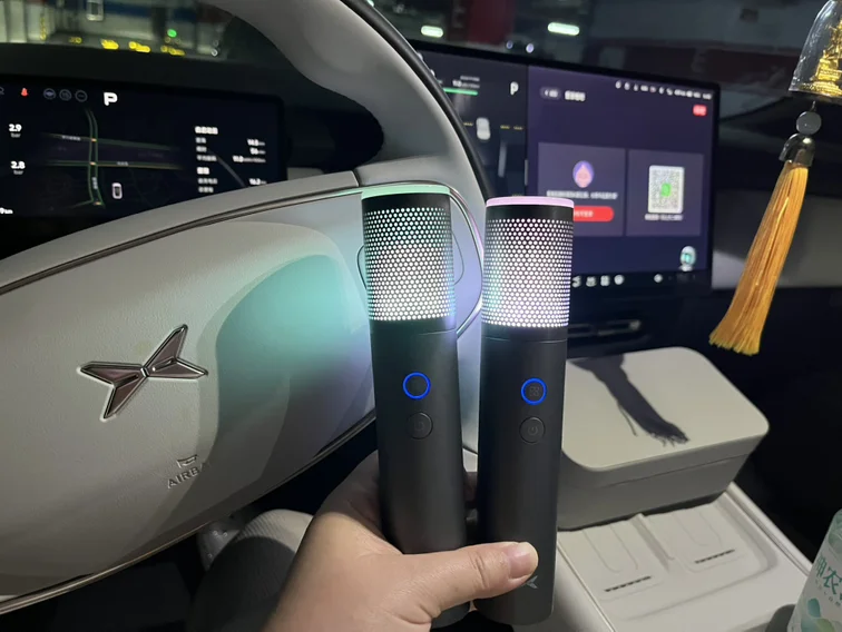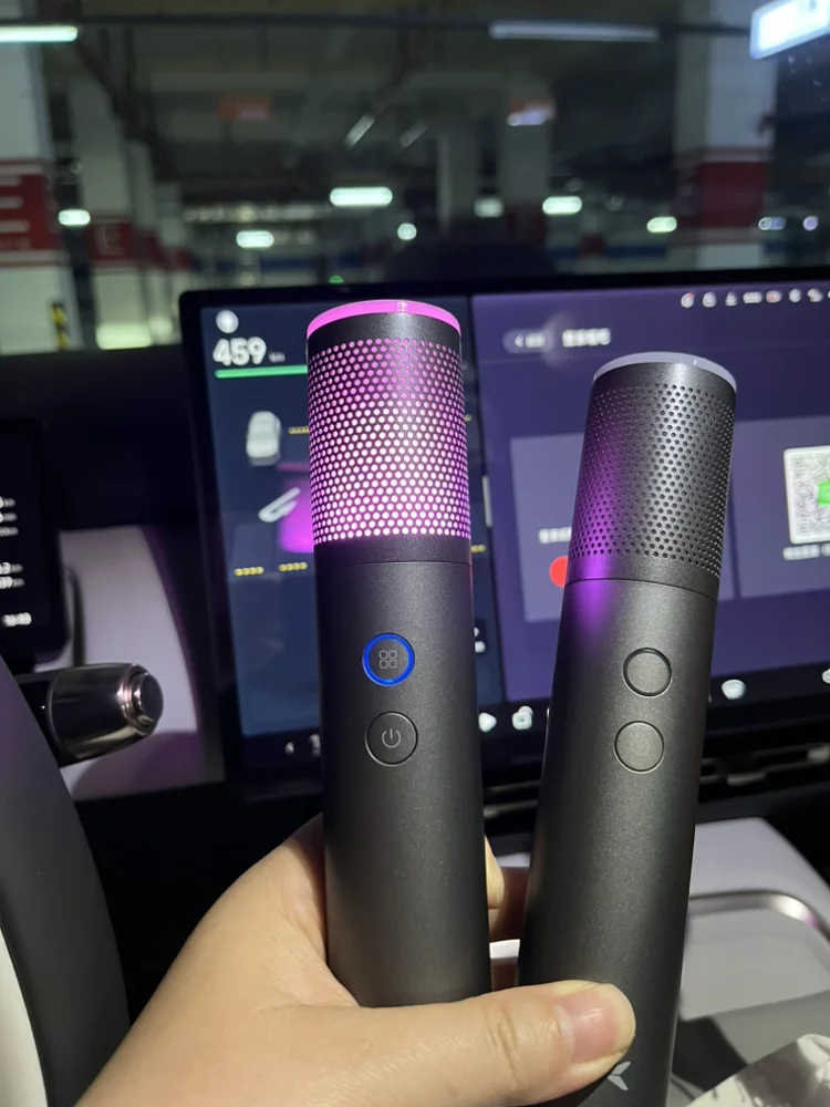 #小鹏车载光年麦克风嗨歌神器# 宽敞的爱车小鹏P7+怎么可以没有这样一个和闺蜜聚会必备的KTV独特空间呢!这对炫酷的麦克风完全符合我的审美,小巧时尚,音效调节非常棒,到手就已经配对好了,直接下载唱吧就可以连接开唱!满意!而且是买车赠送的商城积分全额兑换的,给小鹏点赞!马上和闺蜜约起分享快乐!