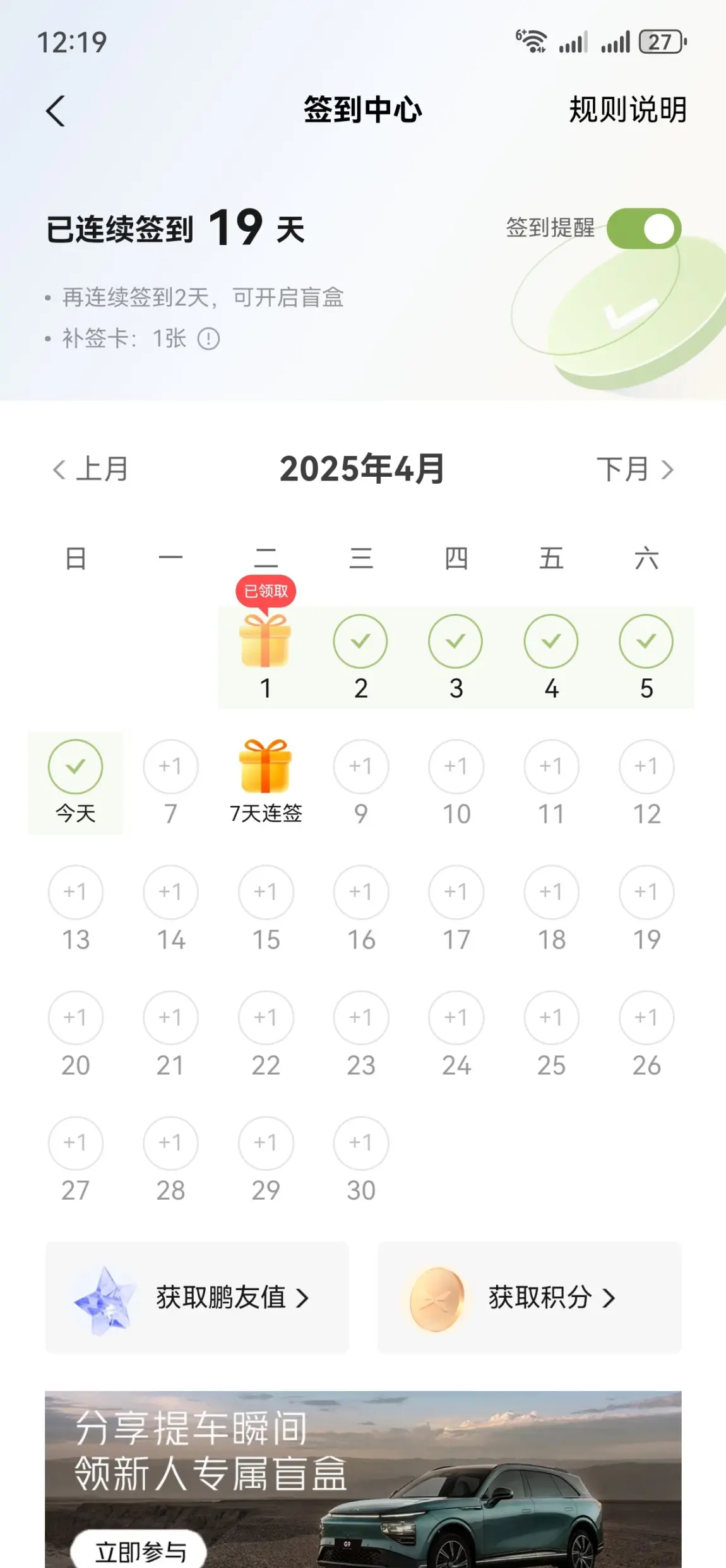 你问我对新款G6有多期待?连续19天的签到代表我都心!❤❤❤请快给我配车啊!!!我准备好了!!! #小鹏汽车 #离目标又近一步啦 小鹏新款G6