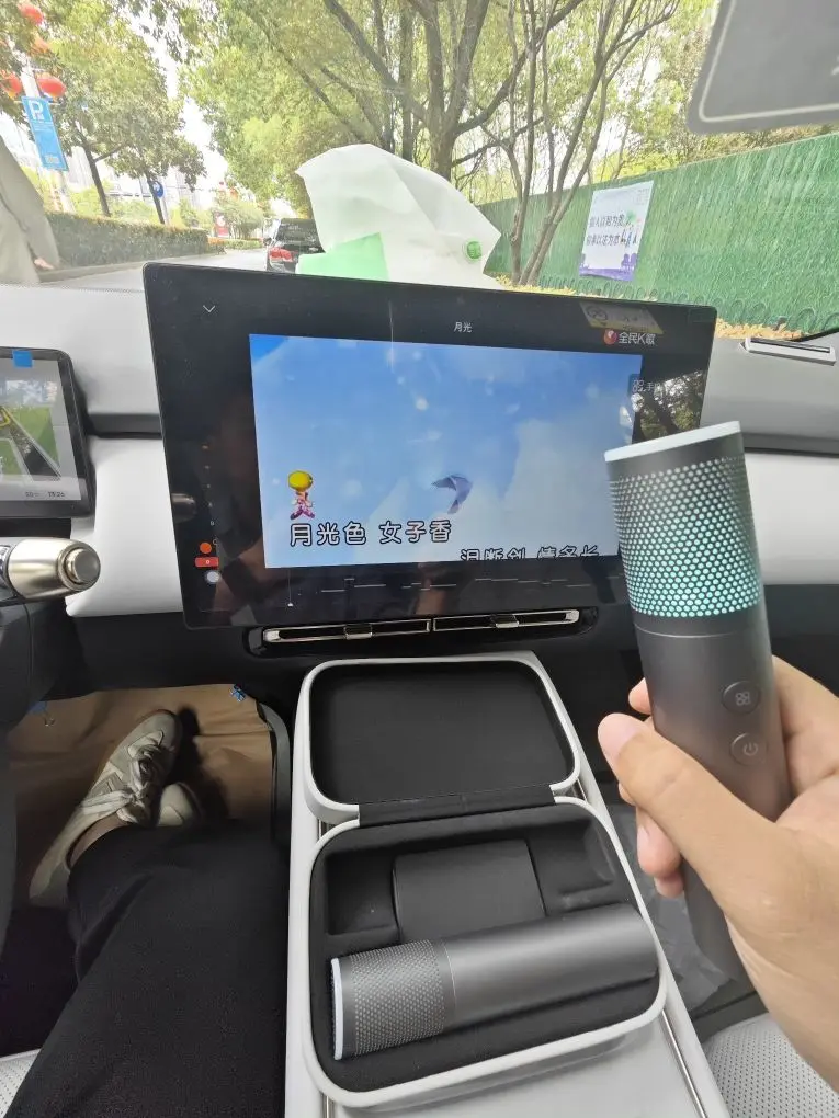 #小鹏车载光年麦克风嗨歌神器# 小鹏的麦克风已经到了,整体还是比较精致的,使用方法也很简单,一个接收器插在typec/usb借口里,再长按按钮打开麦克风开关就有混响的效果了需要通过车机下载唱吧或者全民k歌使用,建议是全民,唱吧要会员整体比较小巧精致,价格也不算贵,体验很好的。